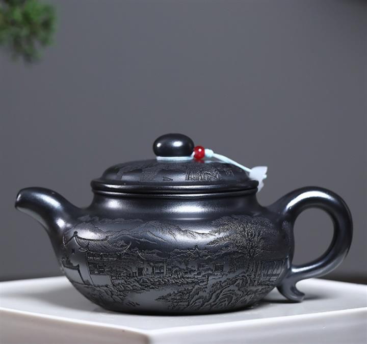 原礦石黃泥滿刻江南茶壺POT7408