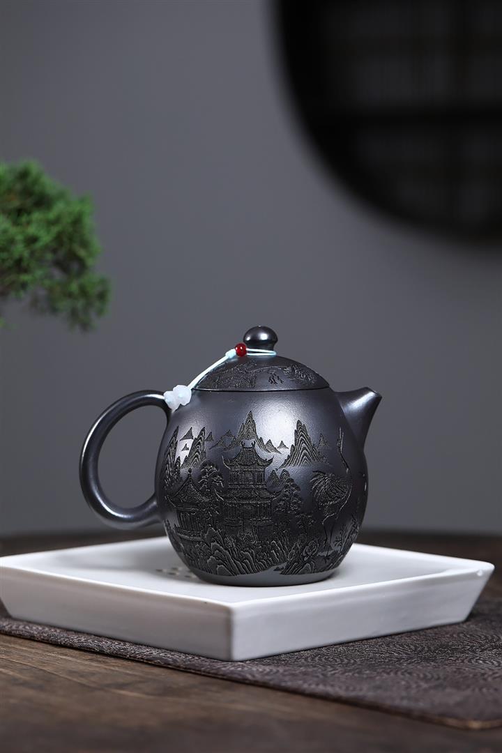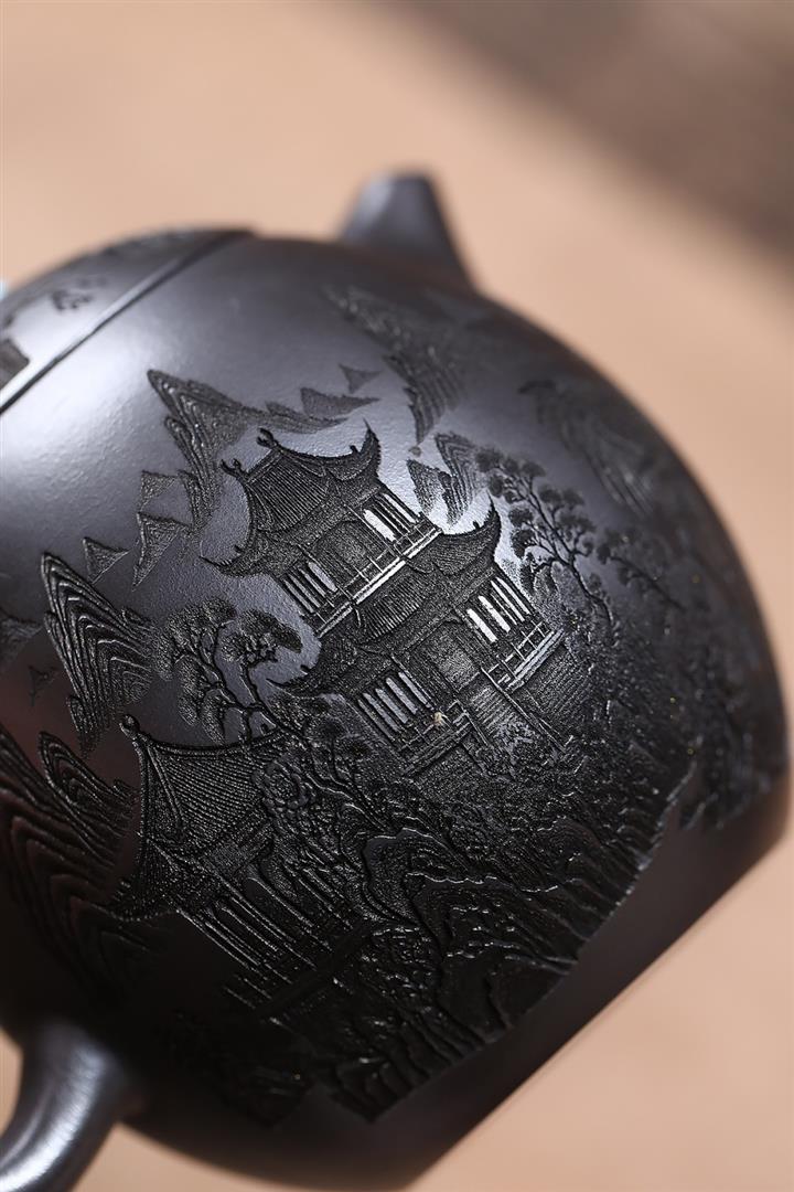原礦龍骨金砂觀山滿刻華亭茶壺POT7417