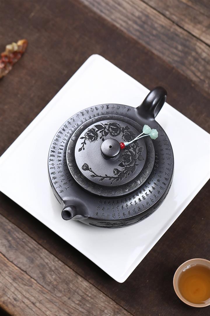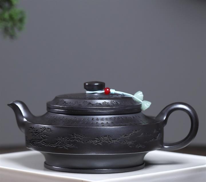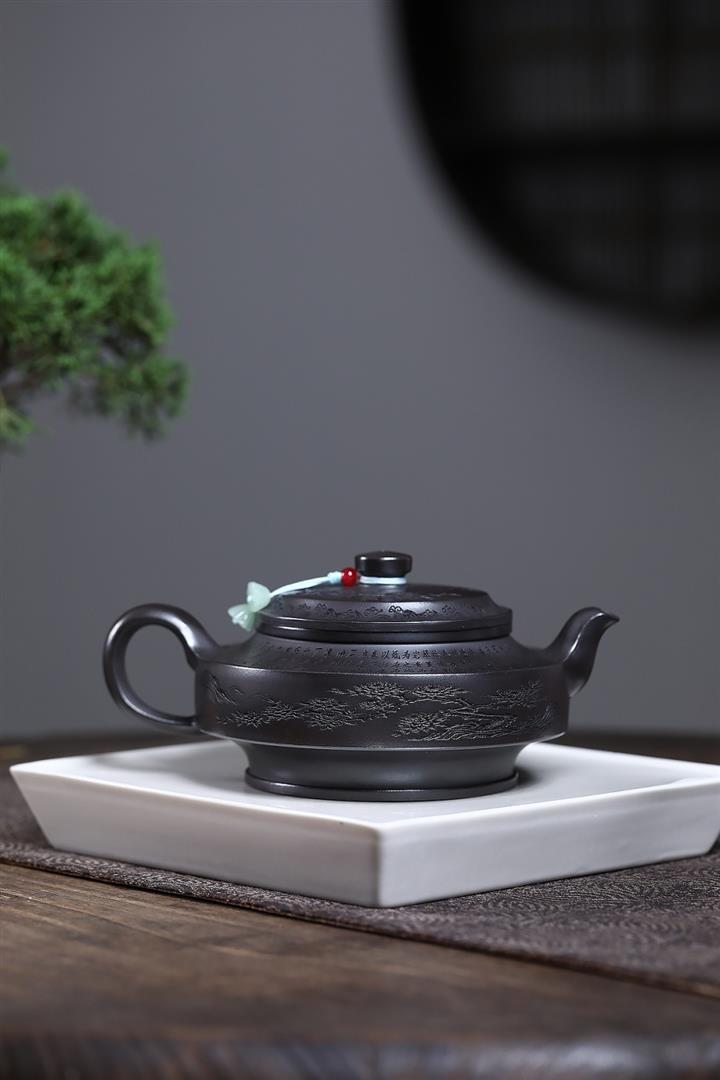 原礦龍血砂滿刻山水水平茶壺POT7419