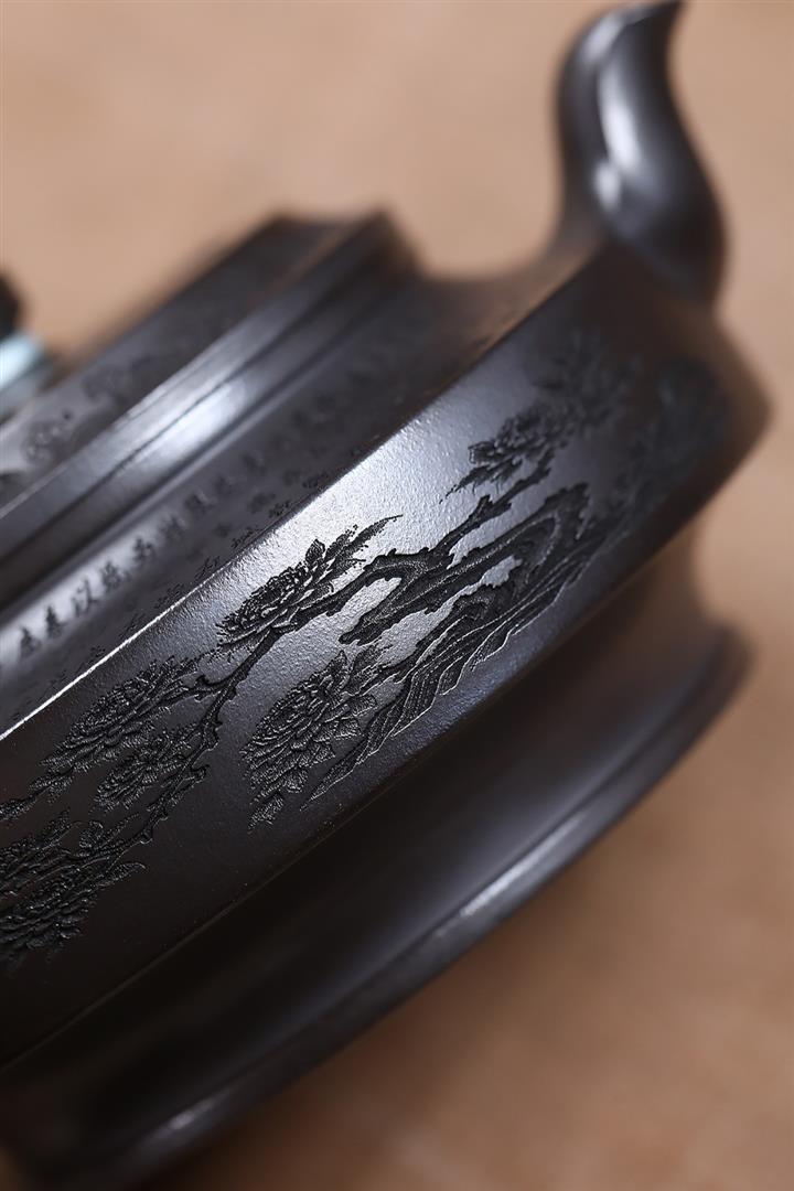 原礦龍骨金砂觀山滿刻華亭茶壺POT7417