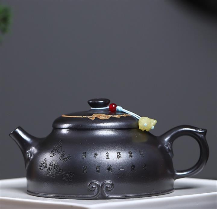 原礦龍血砂滿刻山水水平茶壺POT7419