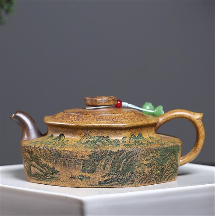 原礦龍骨金砂觀山滿刻華亭茶壺POT7417