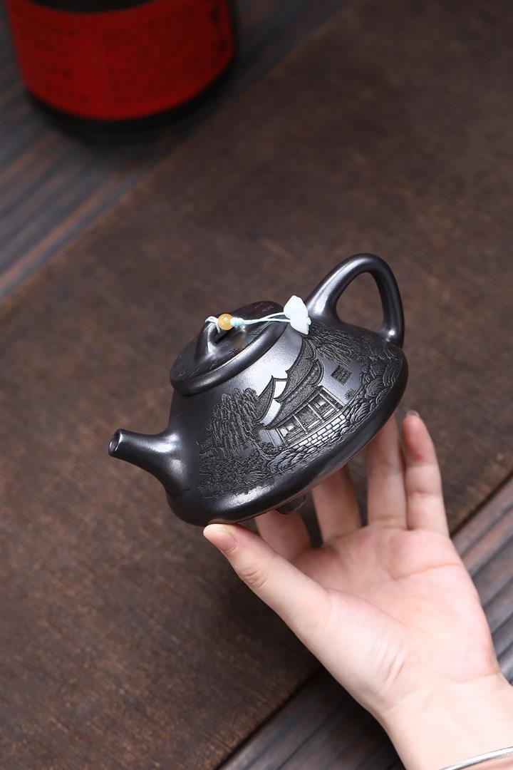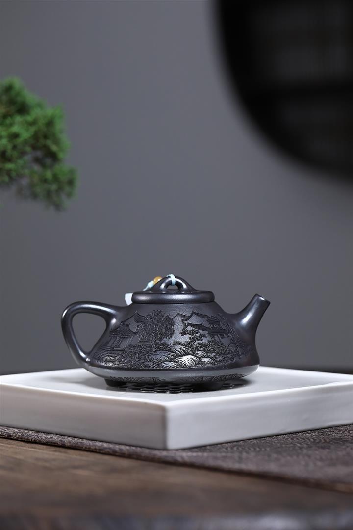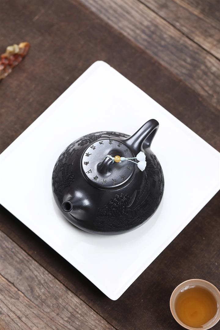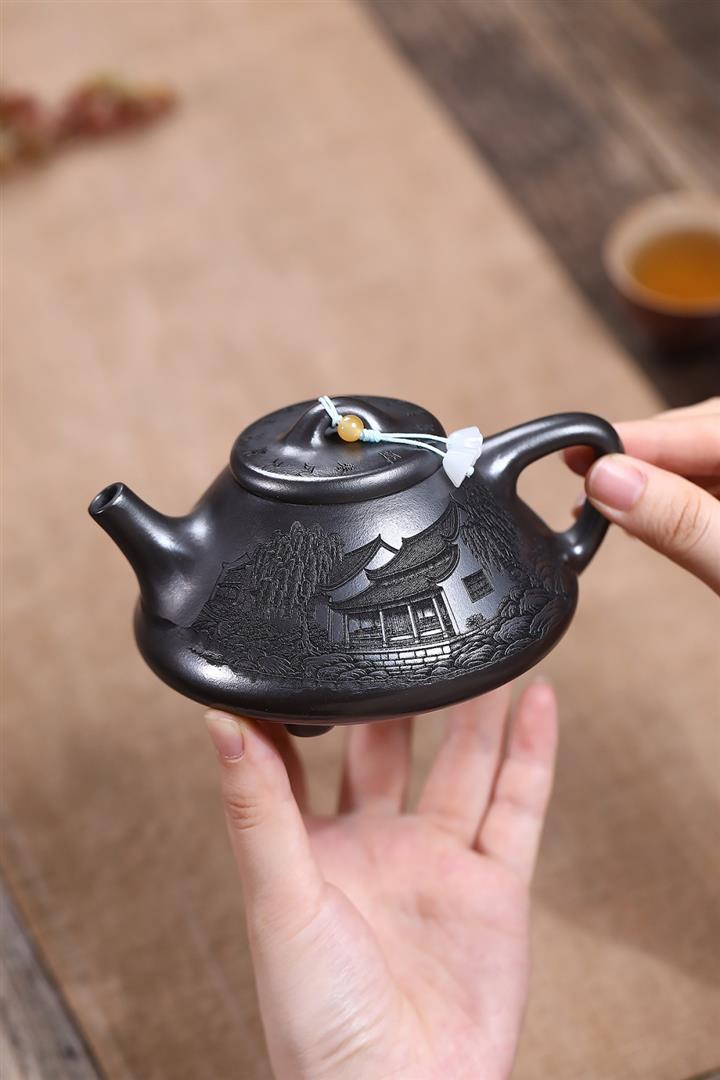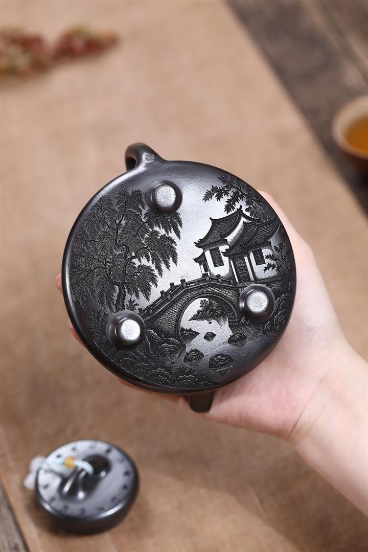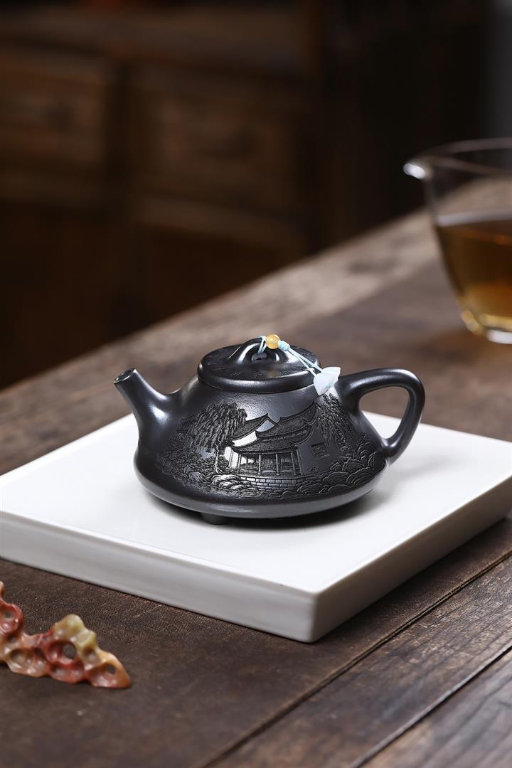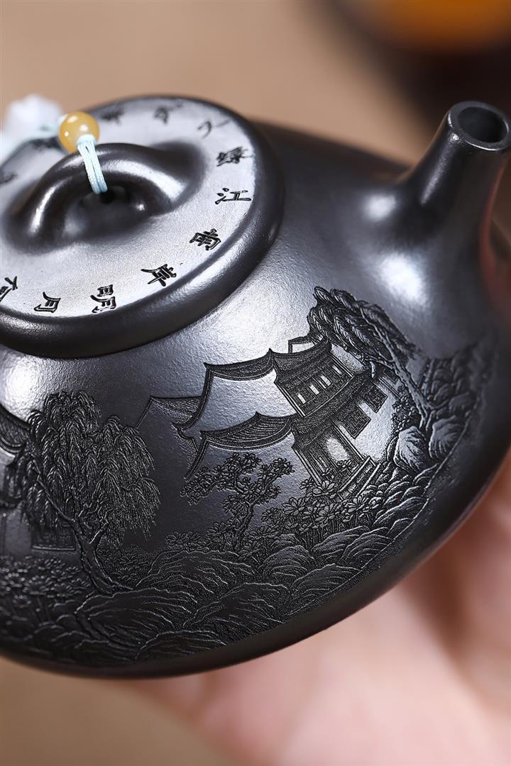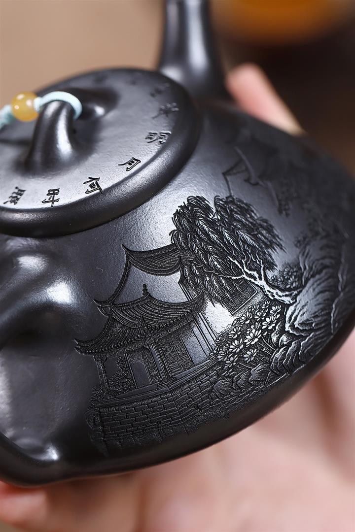 原礦龍骨金砂觀山滿刻華亭茶壺POT7417