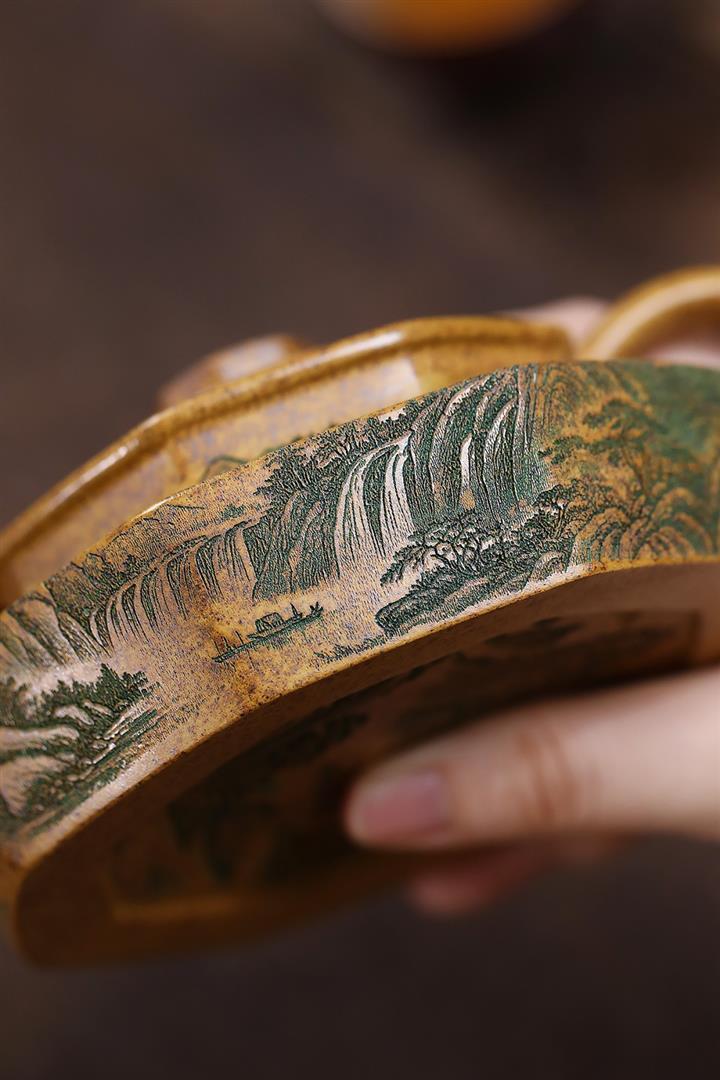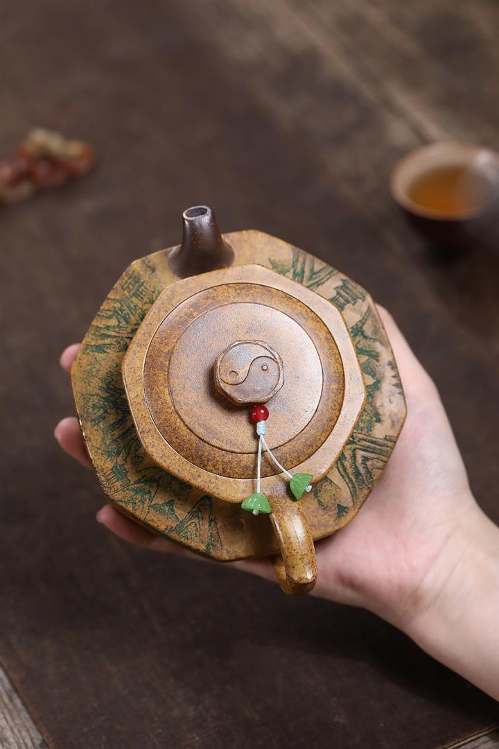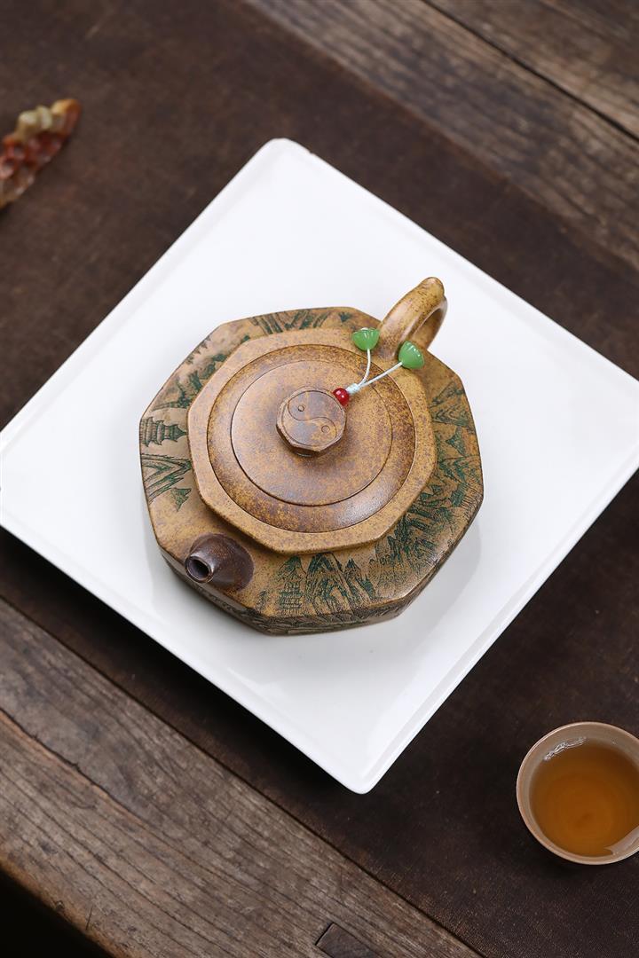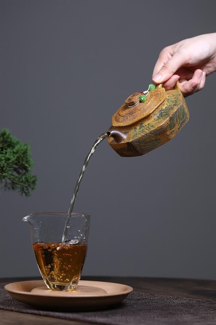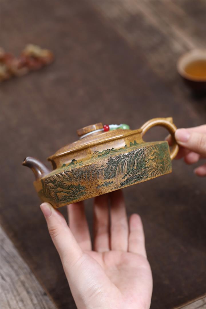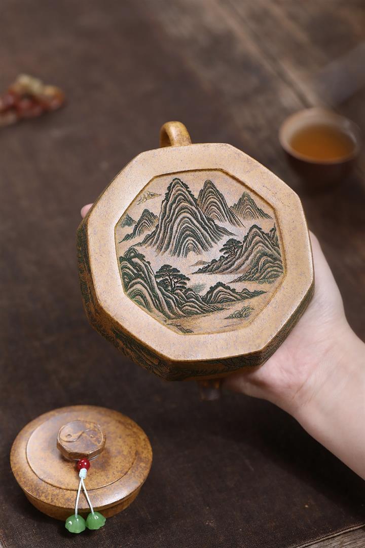 原礦龍骨金砂觀山滿刻華亭茶壺POT7417