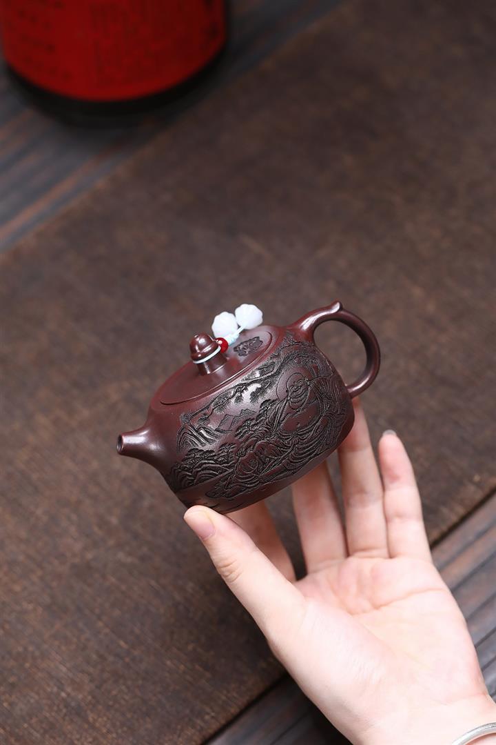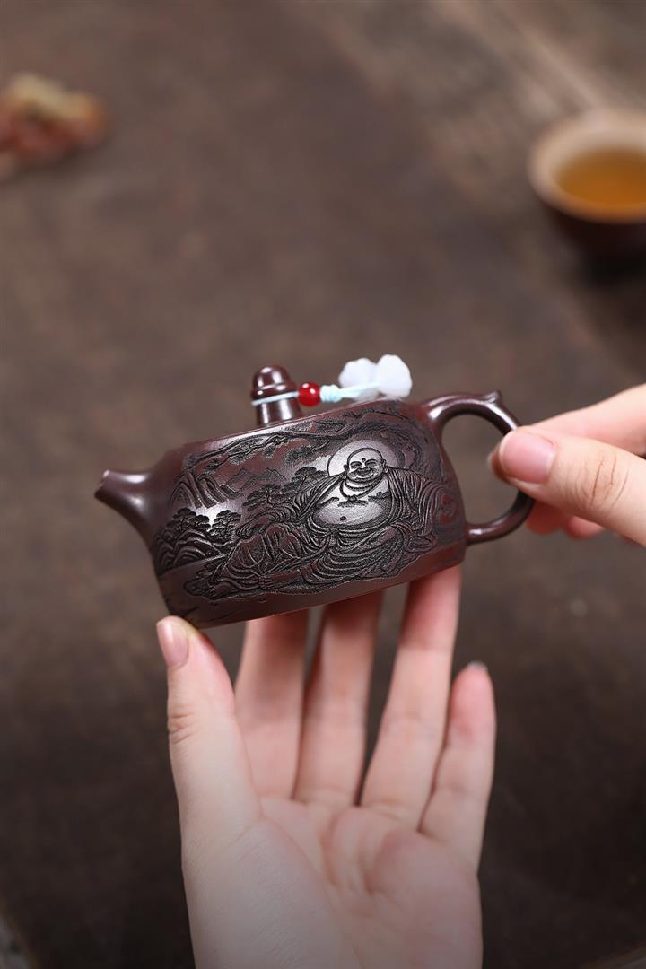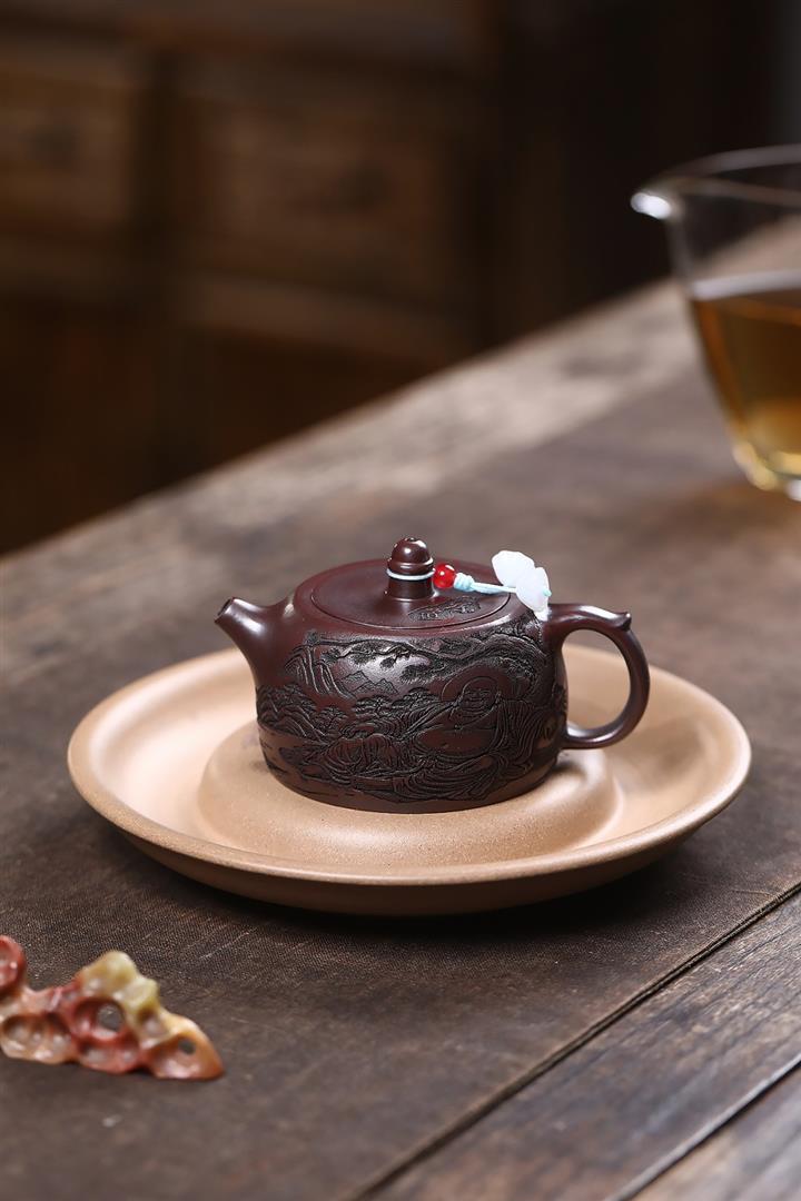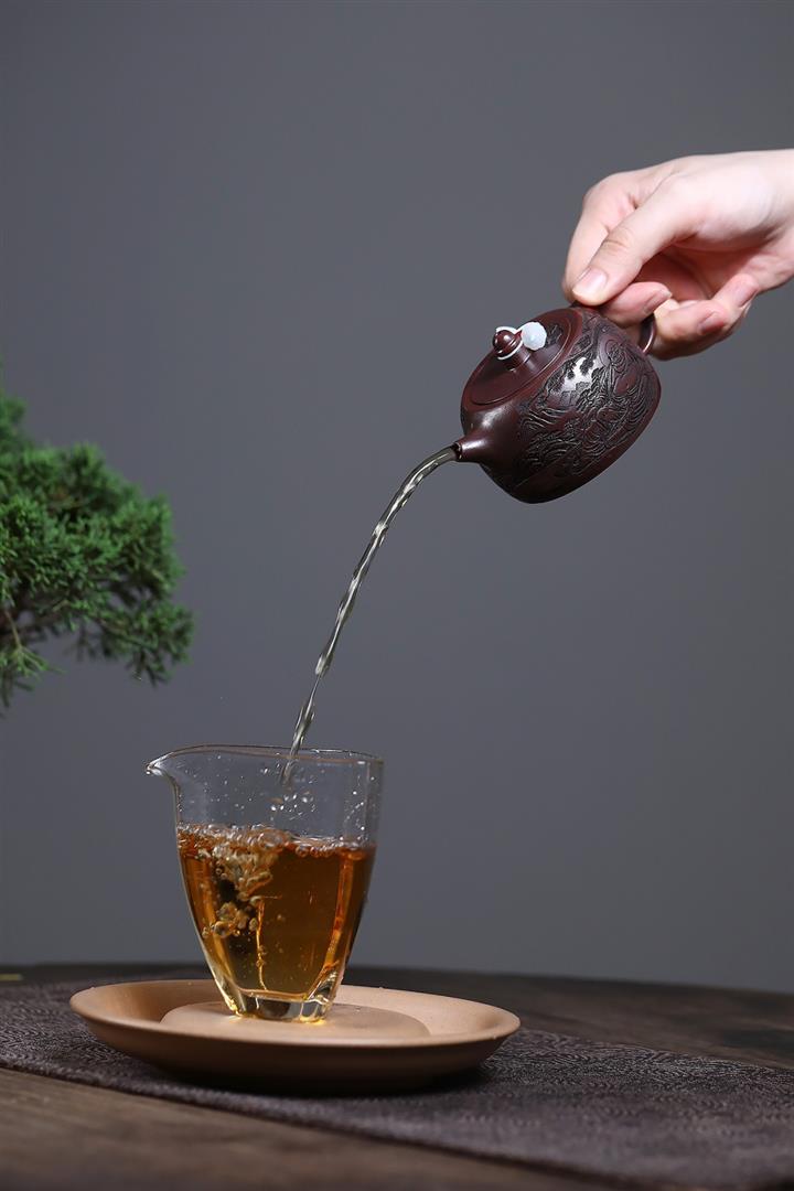 紫砂使用越久,壺身色澤越發光亮照人,氣韻溫雅。紫砂壺長久使用器身會因撫摸擦拭,變得越發溫潤光澤!
