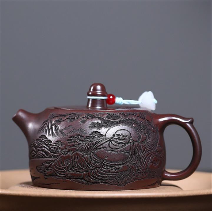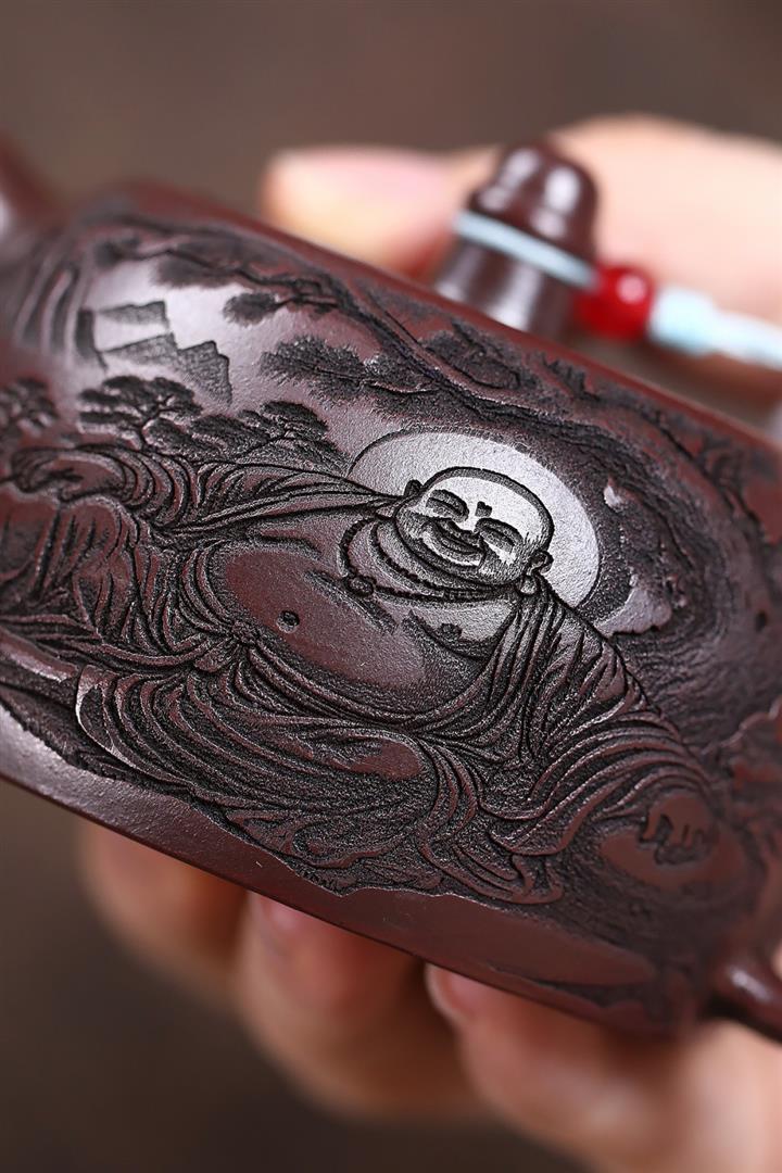原礦朱泥焐灰如意仿古茶壺POT7427