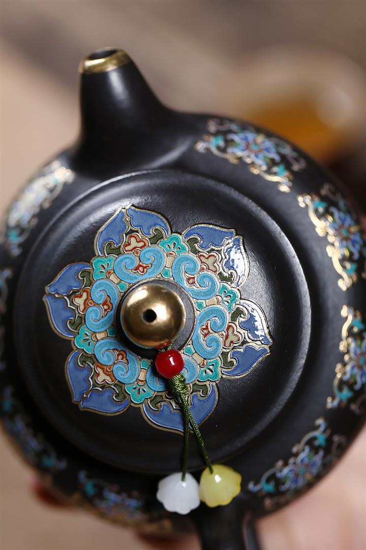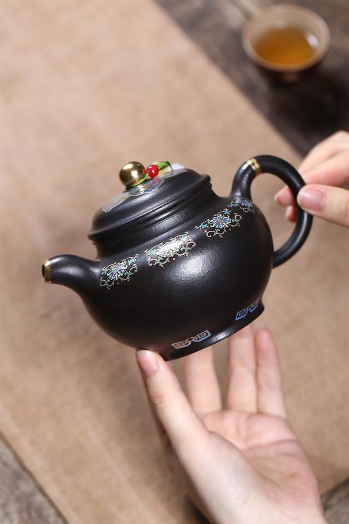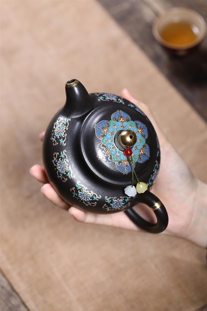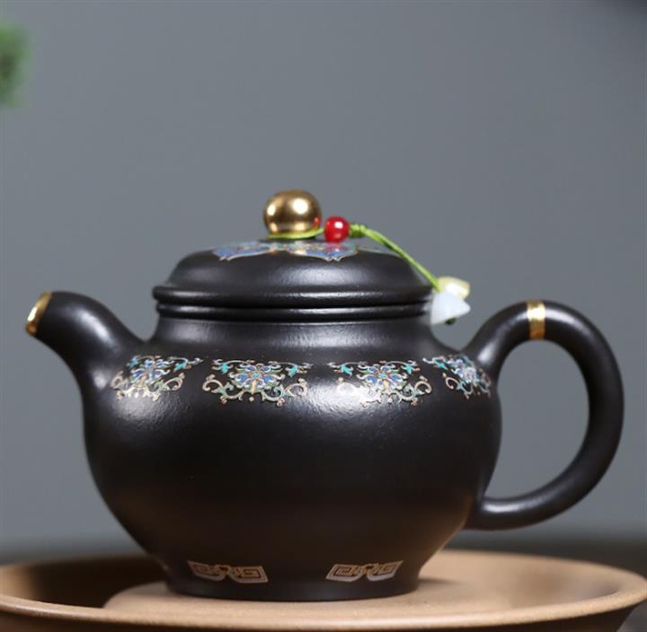 原礦朱泥還原燒琺瑯彩描金掇只茶壺POT7421