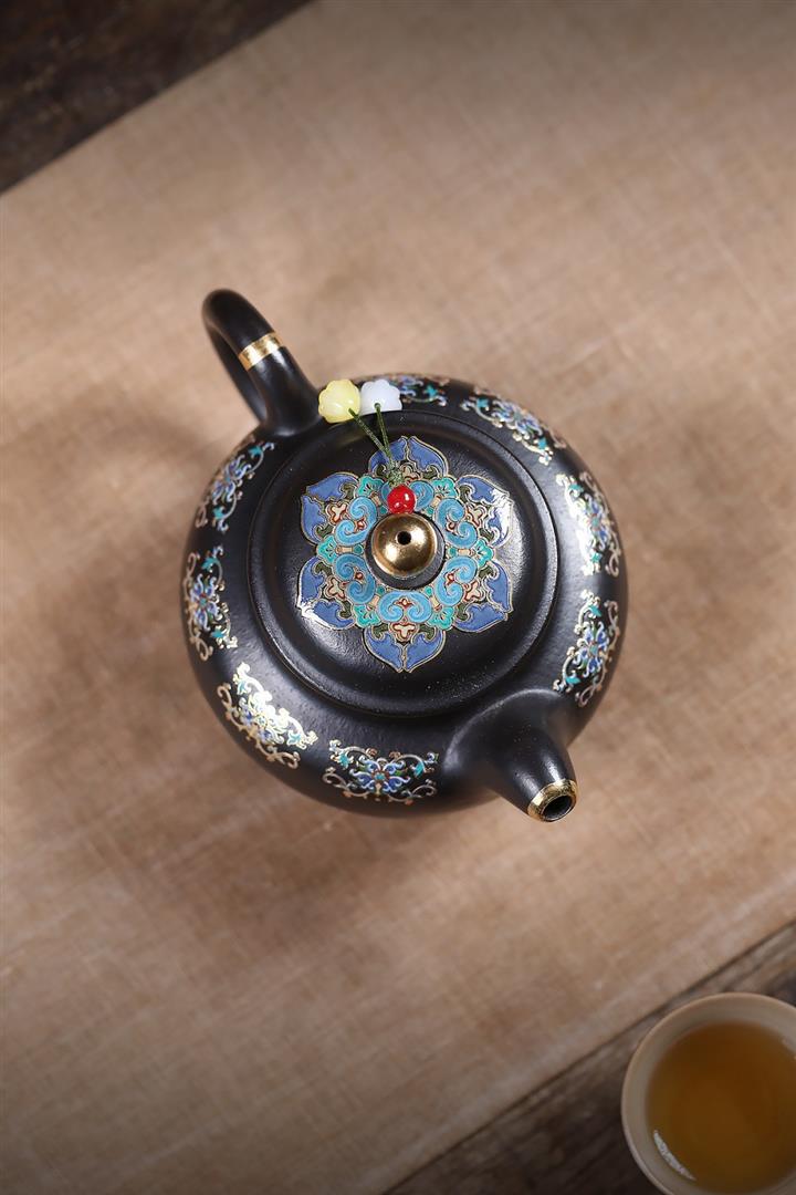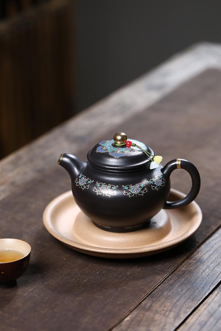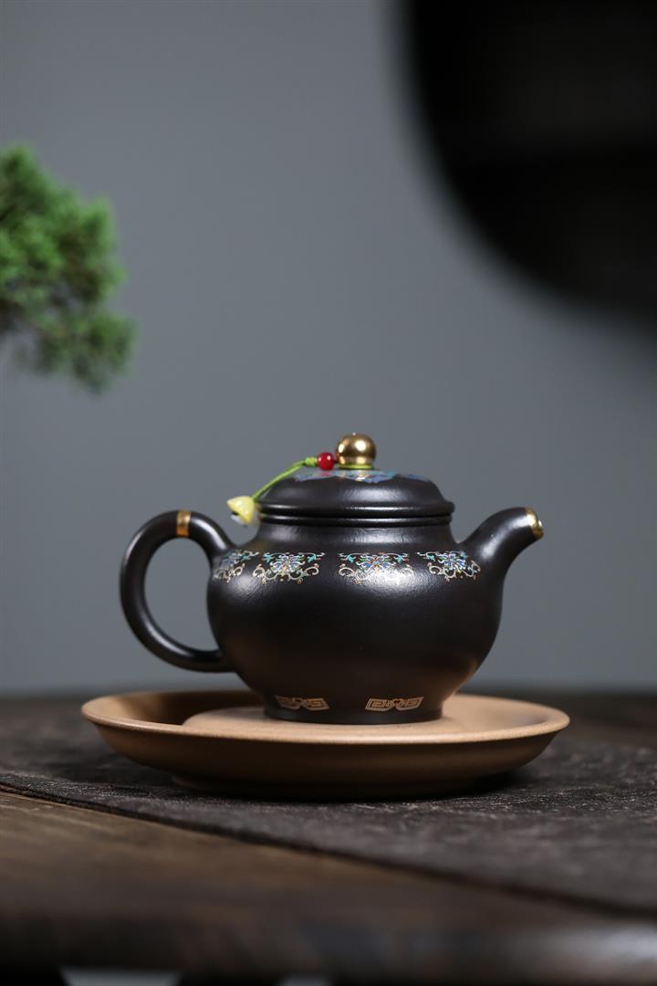 原礦朱泥琺瑯彩描金桑盤茶壺POT7424