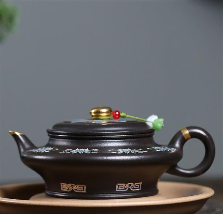 原礦朱泥琺瑯彩描金桑盤茶壺POT7424