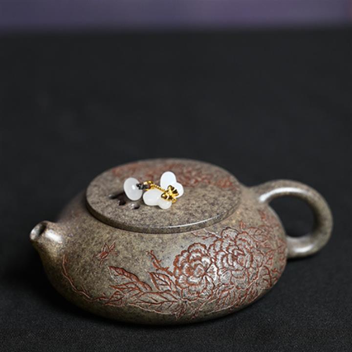 原礦朱泥焐灰如意仿古茶壺POT7427
