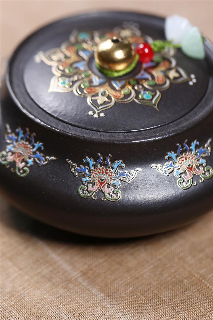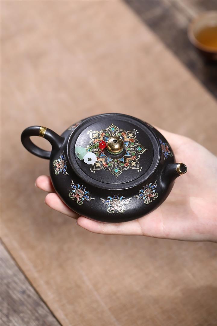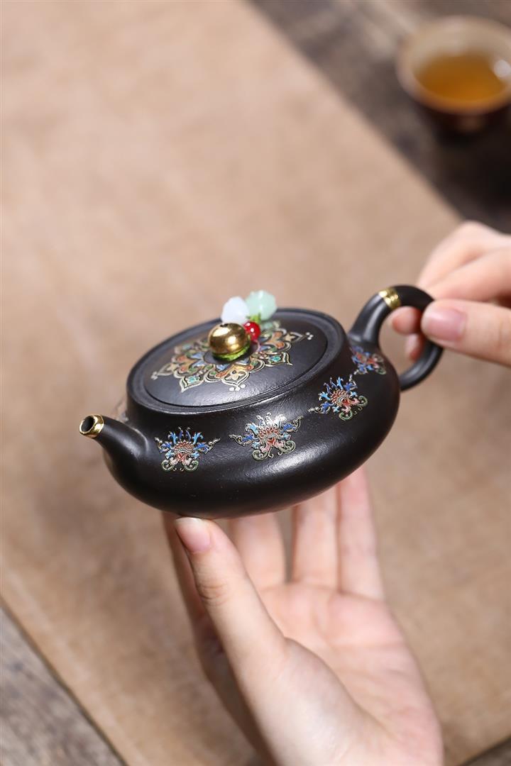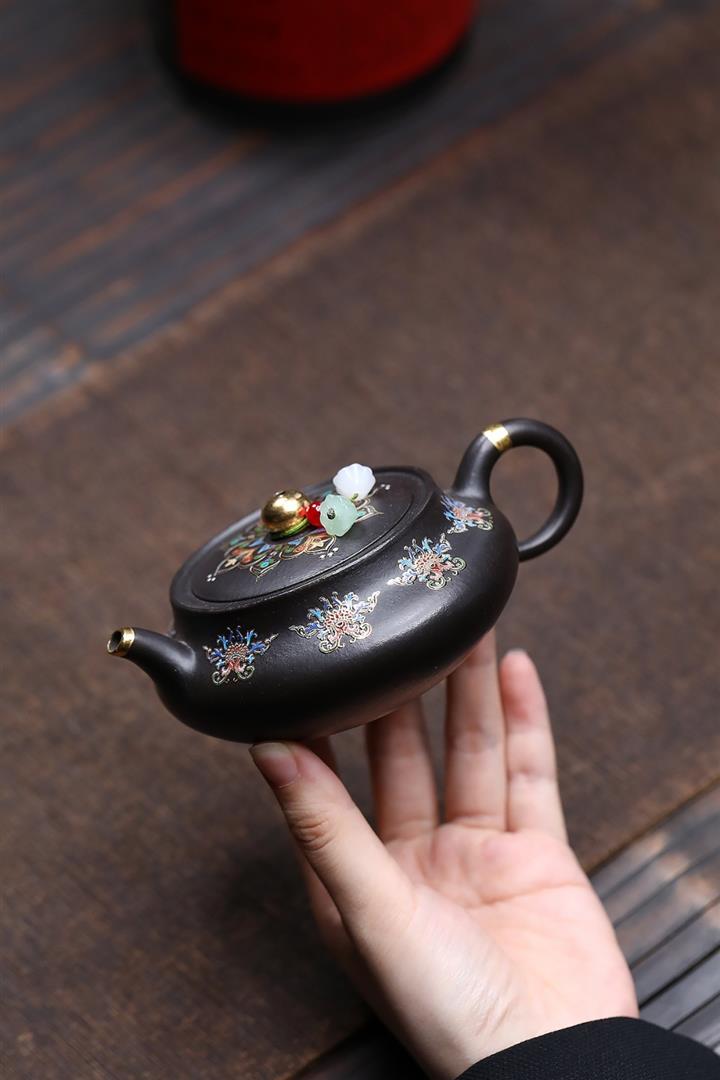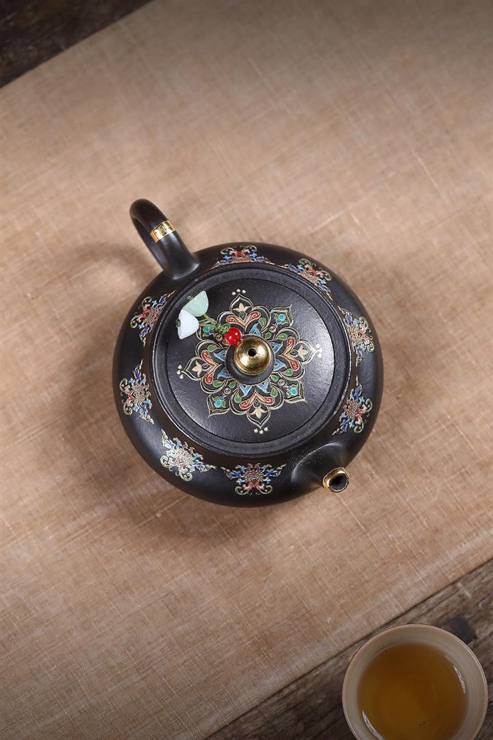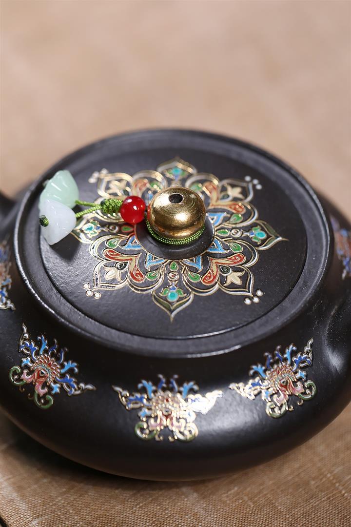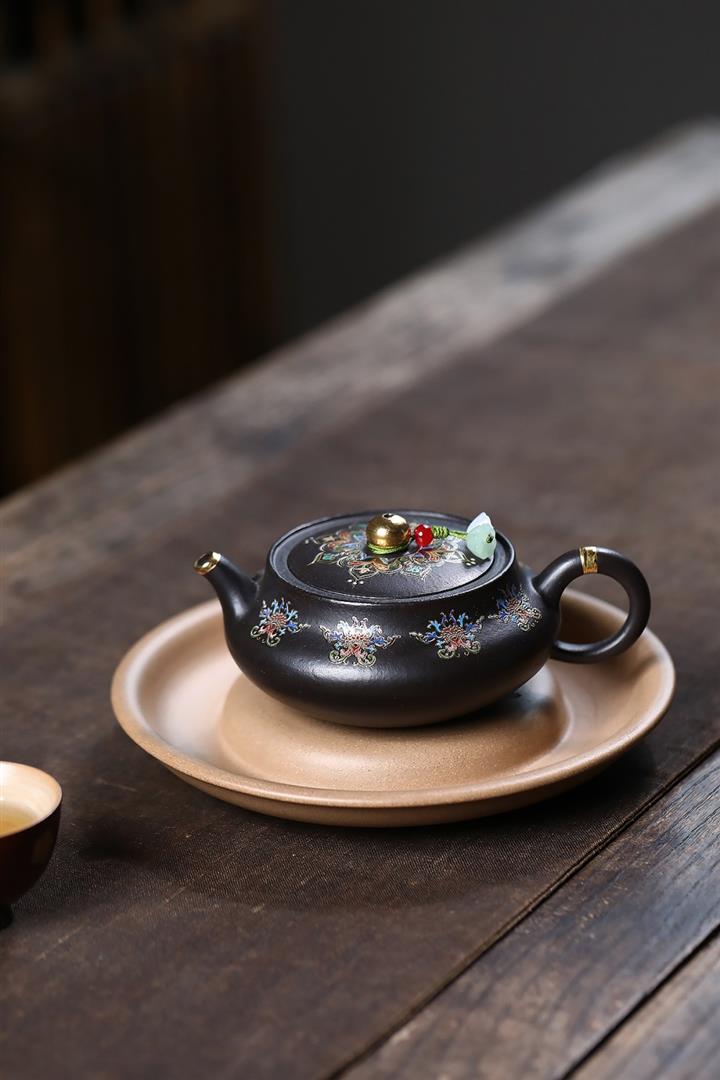 原礦朱泥琺瑯彩描金桑盤茶壺POT7424