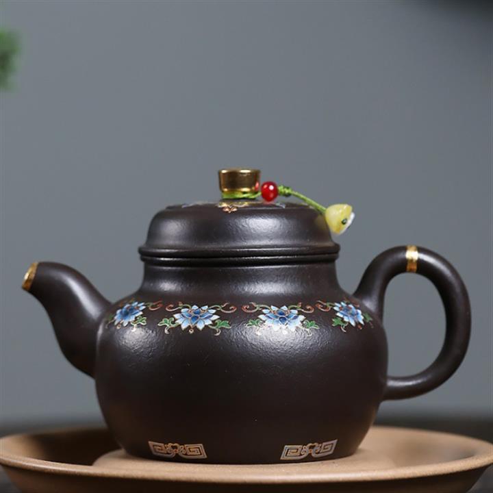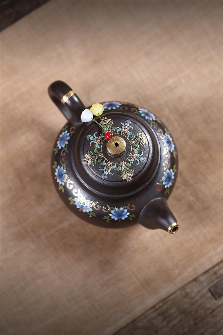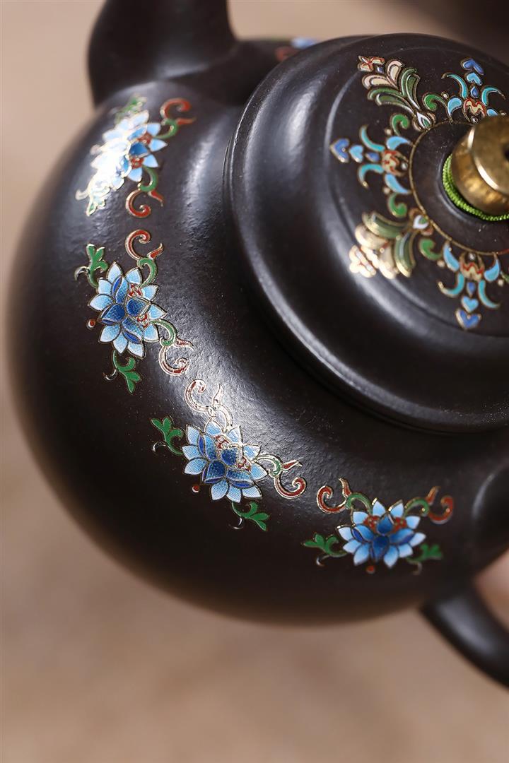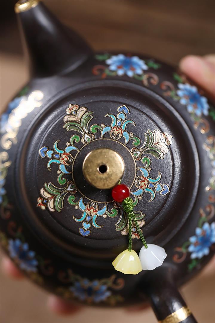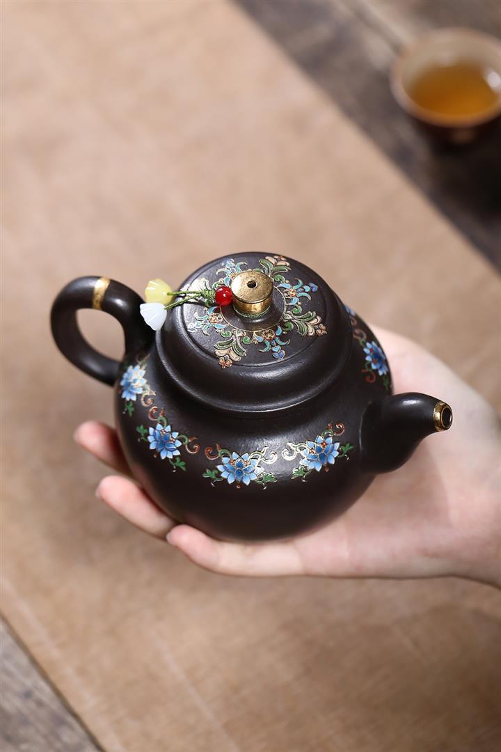 原礦朱泥琺瑯彩描金道洪德鐘茶壺POT7425