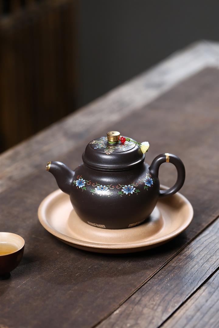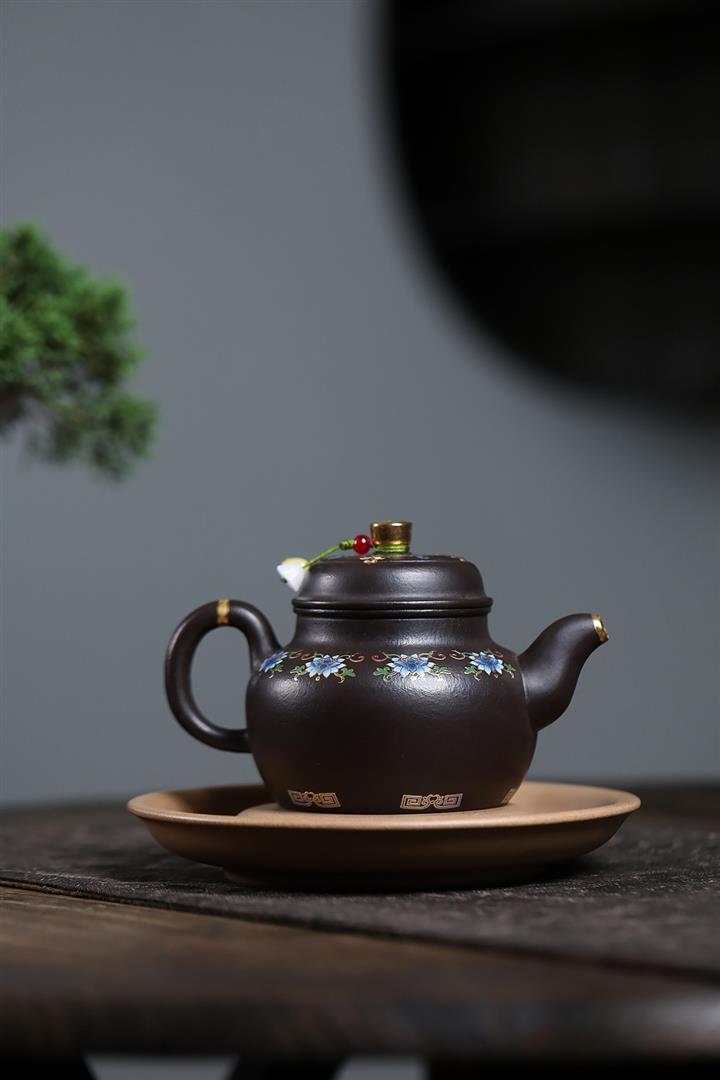 原礦黑朱泥泥繪花鳥憨瓢茶壺POT7426