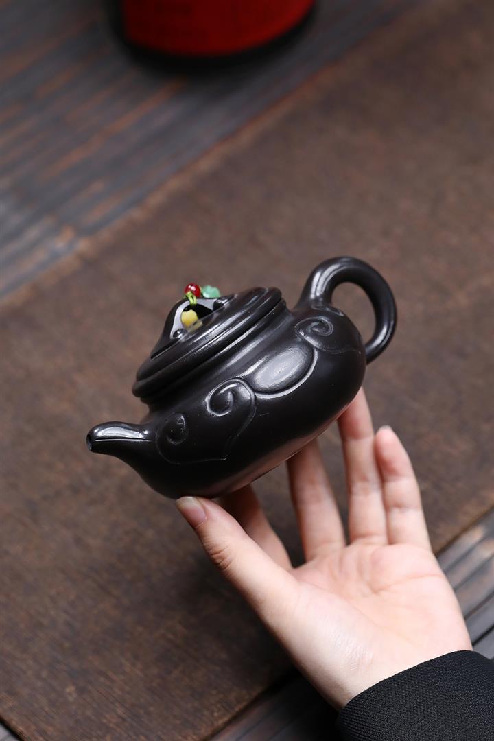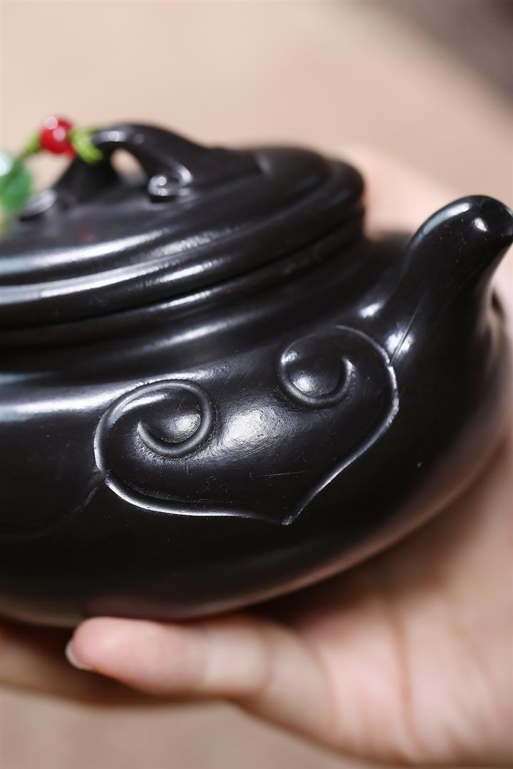 原礦朱泥焐灰如意仿古茶壺POT7427