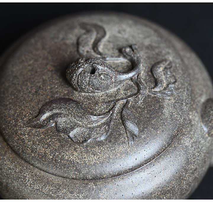 原礦開花泥純手工平蓋石瓢茶壺POT7432