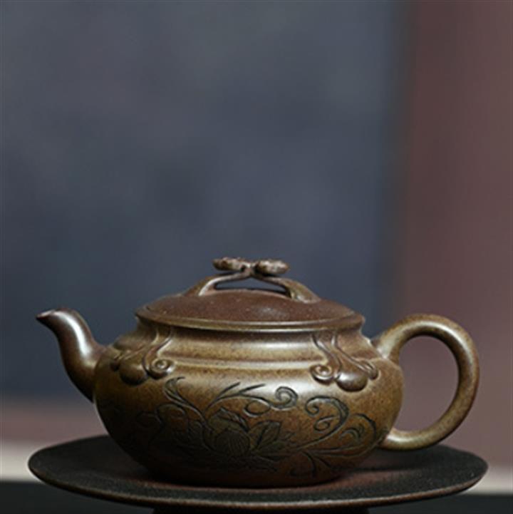原礦龍血砂水平壺刻繪茶壺POT7440
