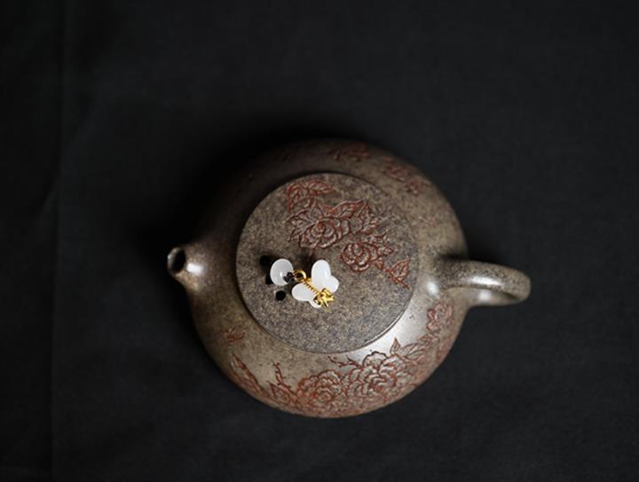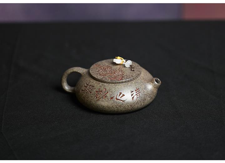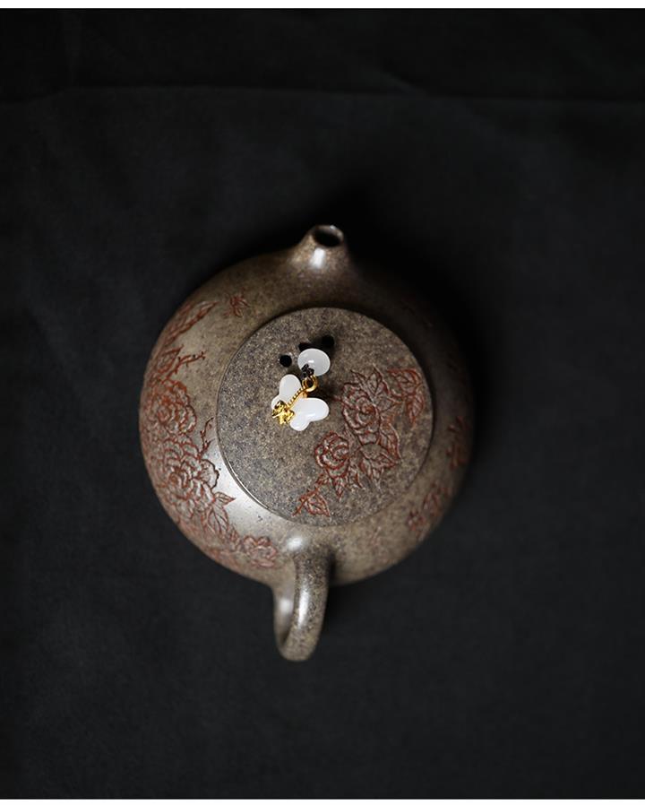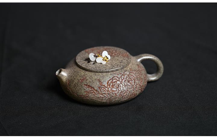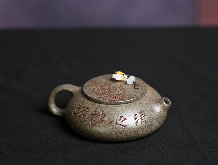 原礦龍血砂水平壺刻繪茶壺POT7440