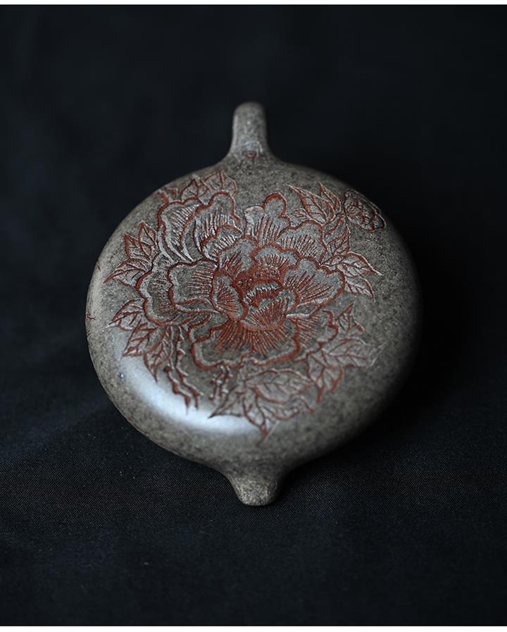 原礦開花泥純手工平蓋石瓢茶壺POT7432