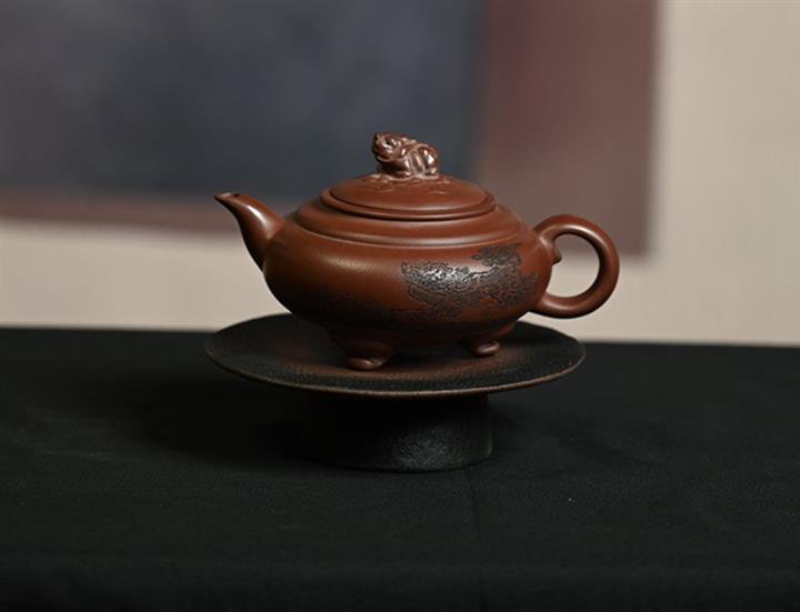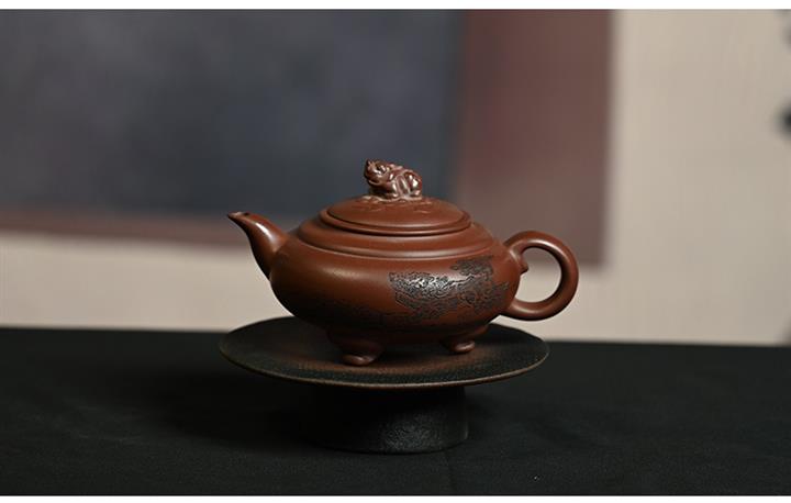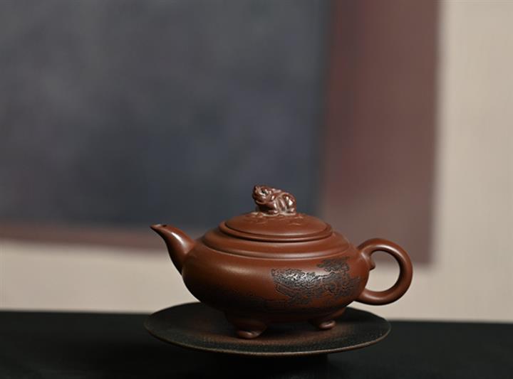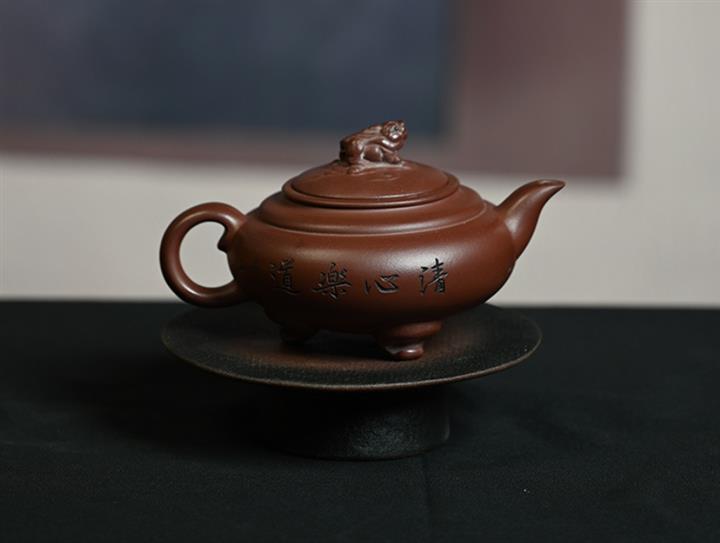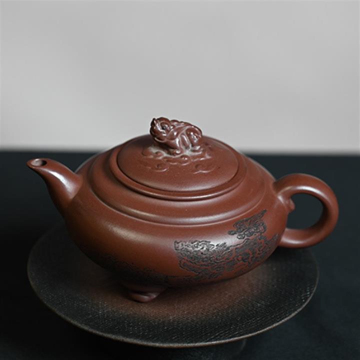 原礦龍血砂三足祥瑞刻繪茶壺POT7438