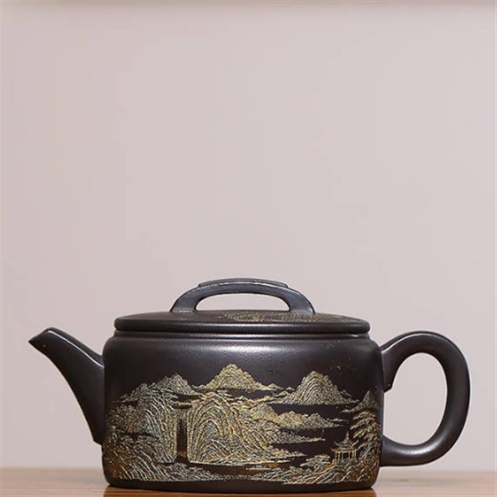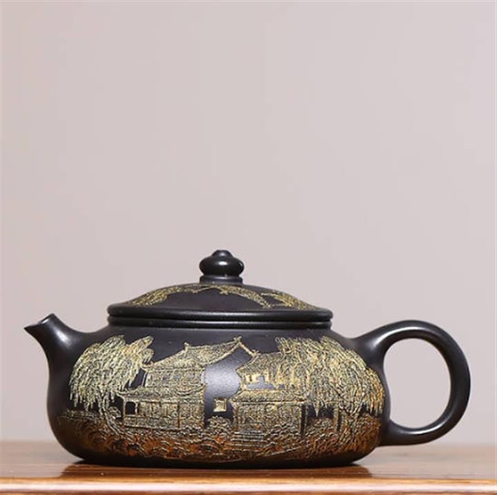 原礦龍血砂水平壺刻繪茶壺POT7440