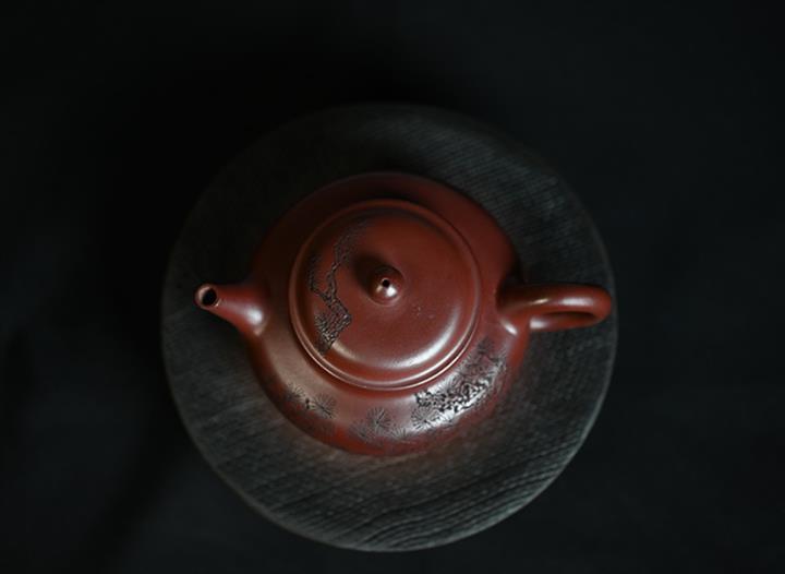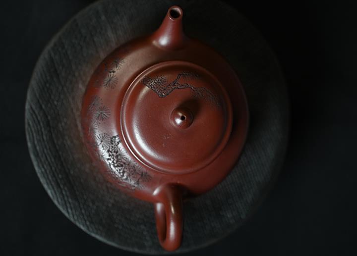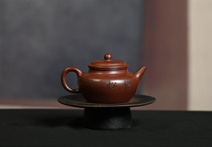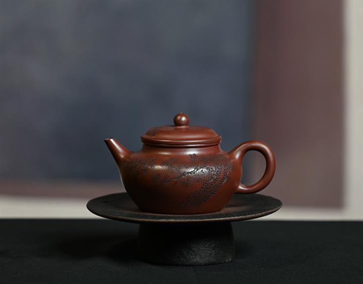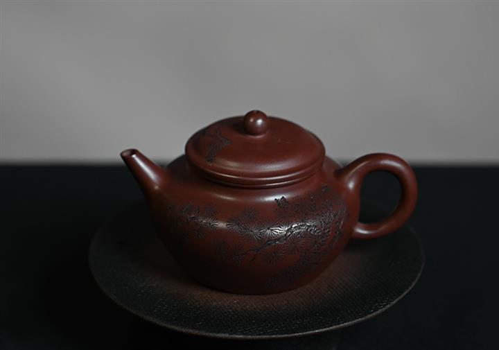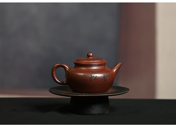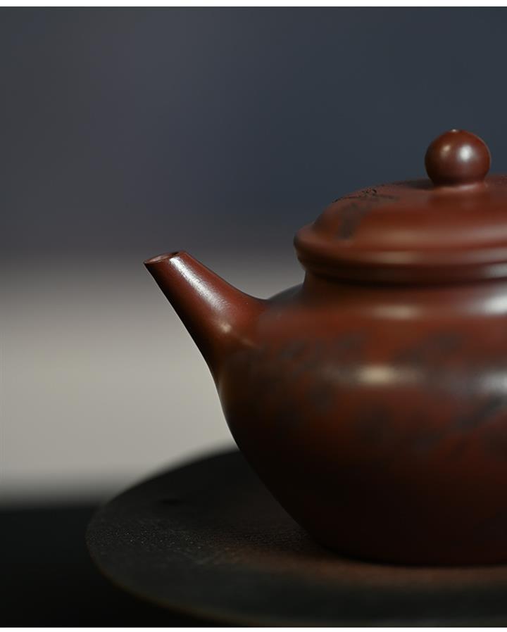 原礦龍血砂水平壺刻繪茶壺POT7440