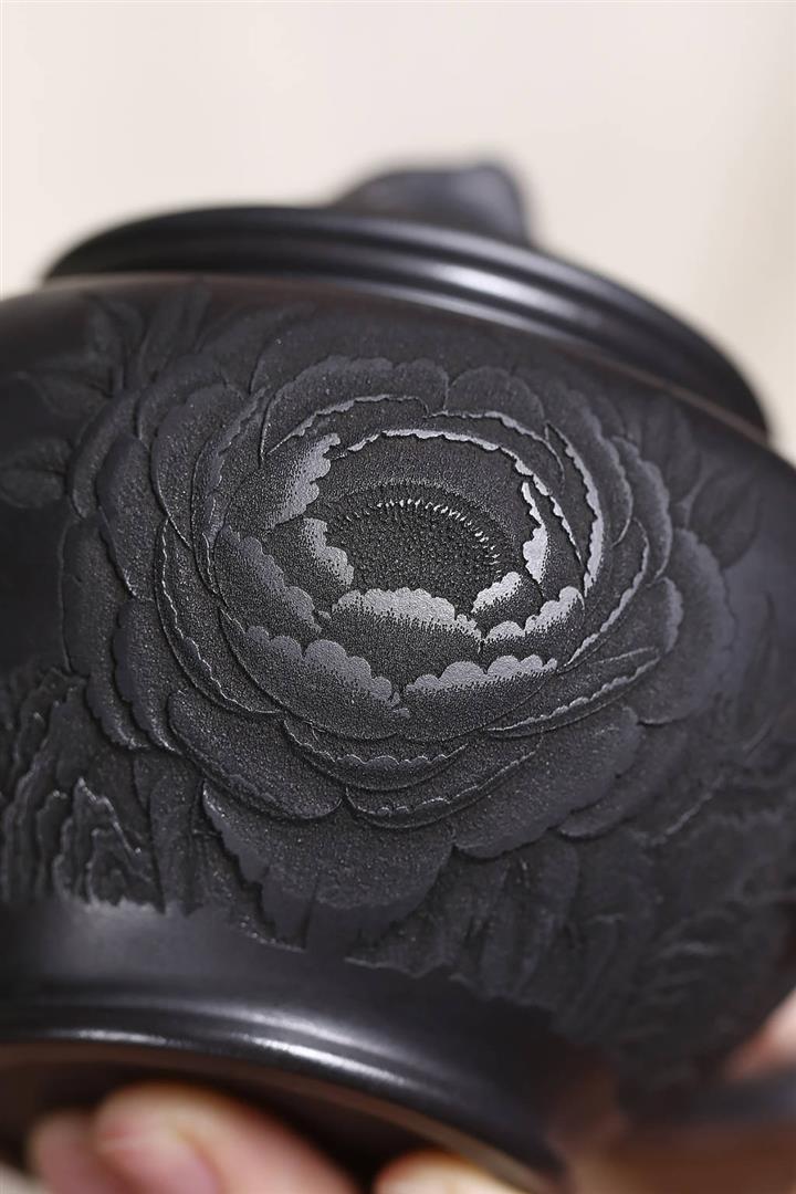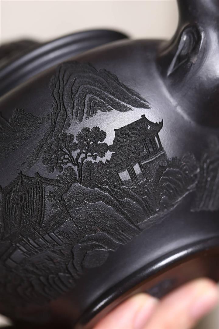捂灰朱泥琺瑯彩燒虛扁茶壺POT7453