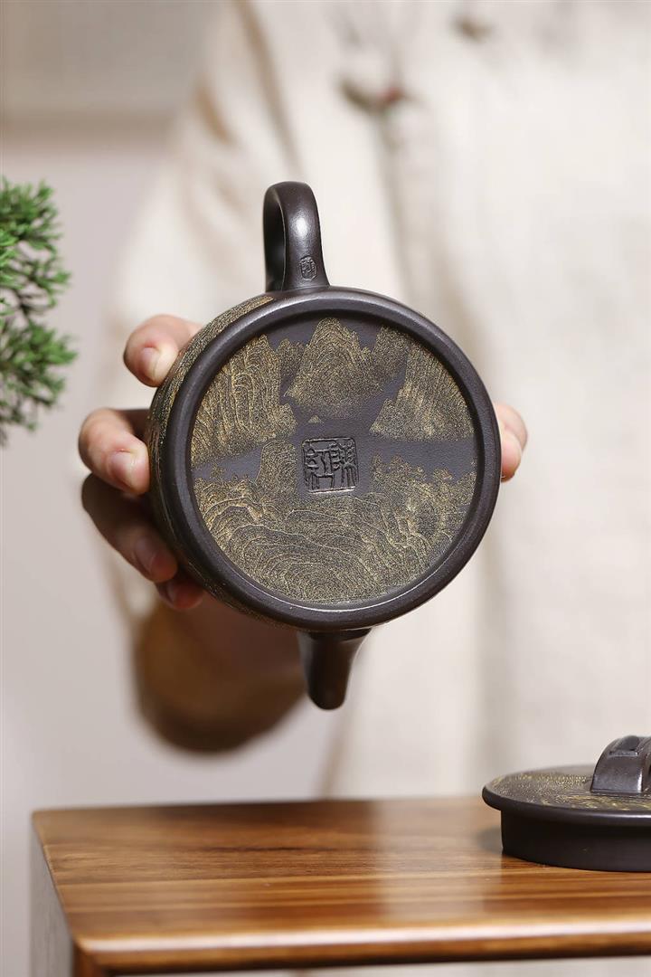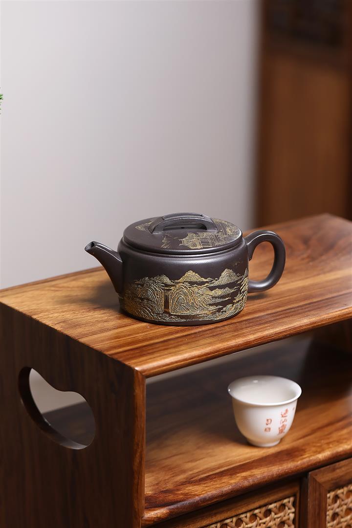 捂灰朱泥琺瑯彩燒桑扁茶壺POT7456