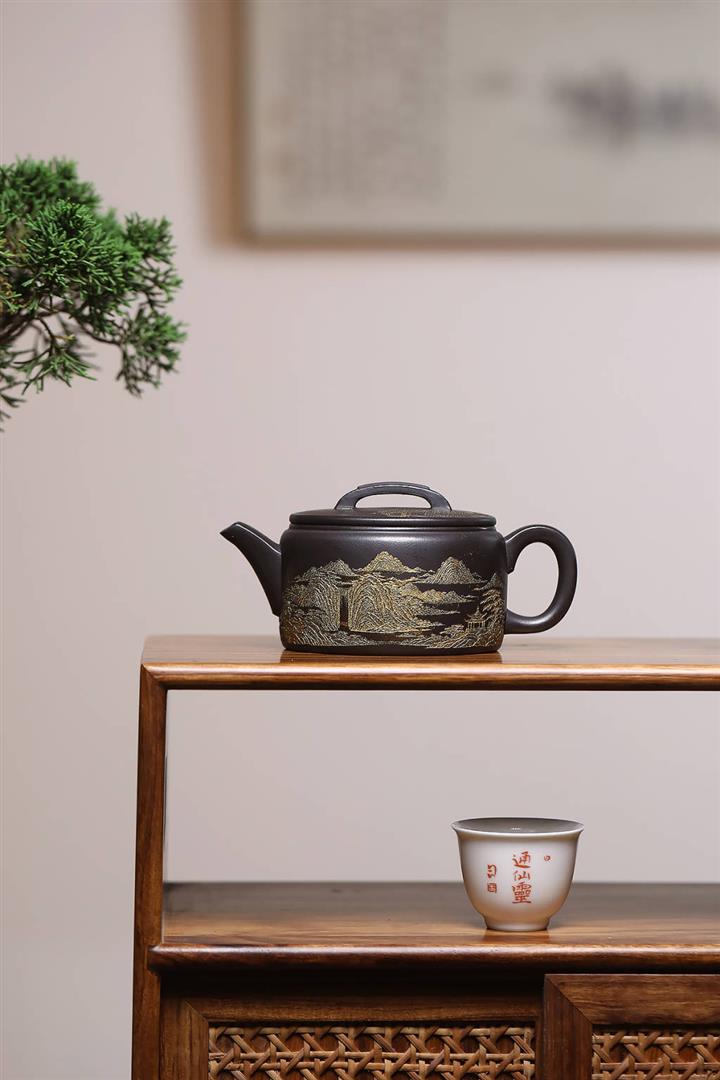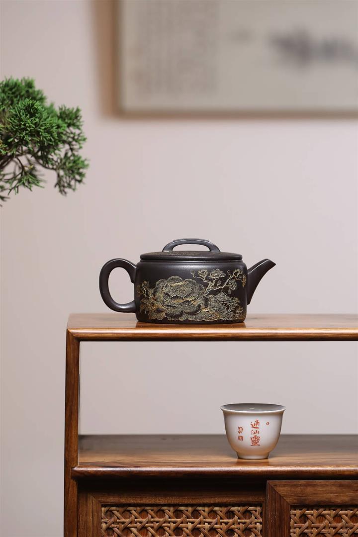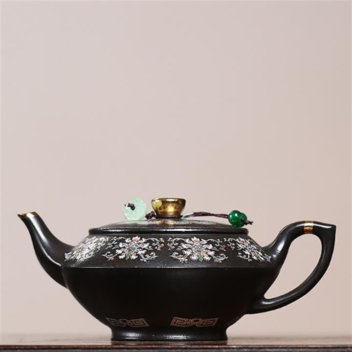 捂灰朱泥琺瑯彩燒曼殊茶壺POT7457