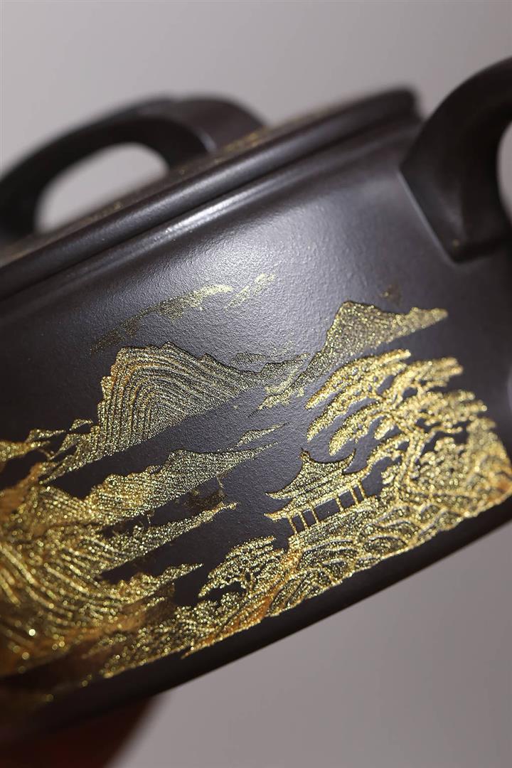 捂灰朱泥琺瑯彩燒虛扁茶壺POT7453