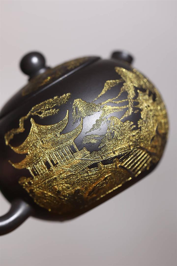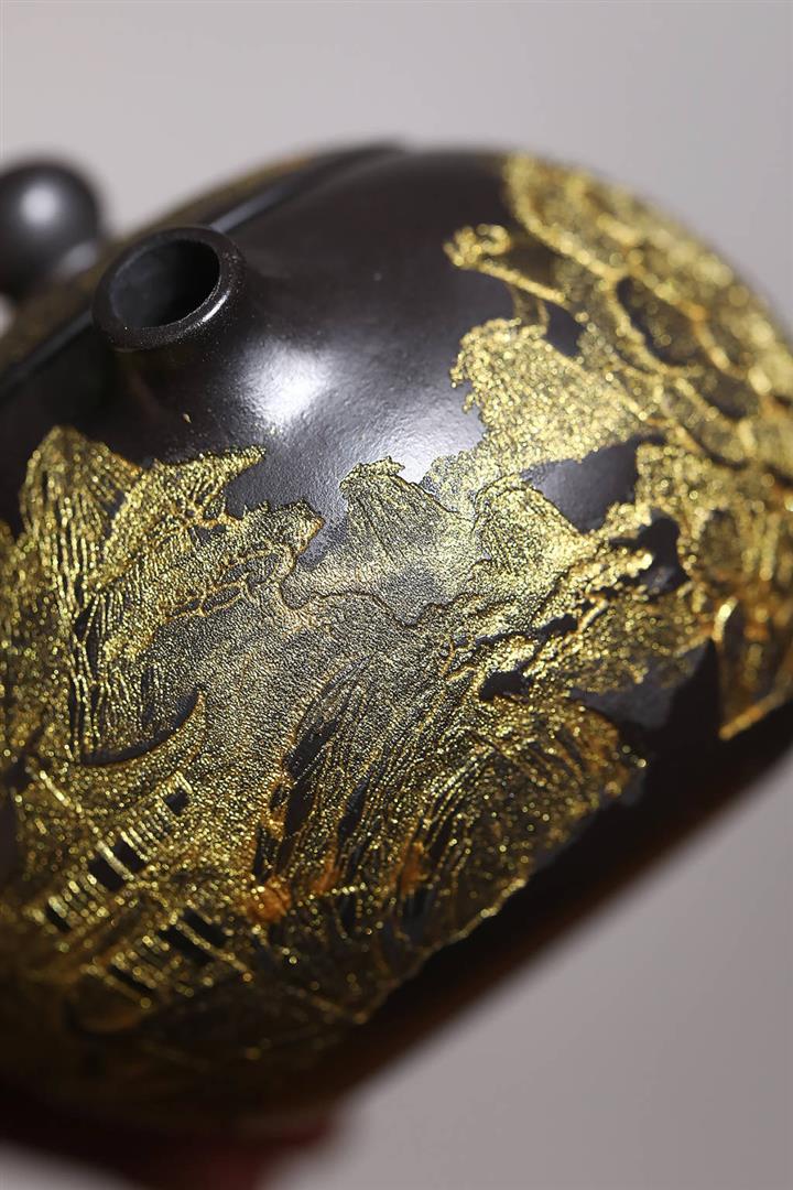 捂灰朱泥琺瑯彩燒虛扁茶壺POT7453