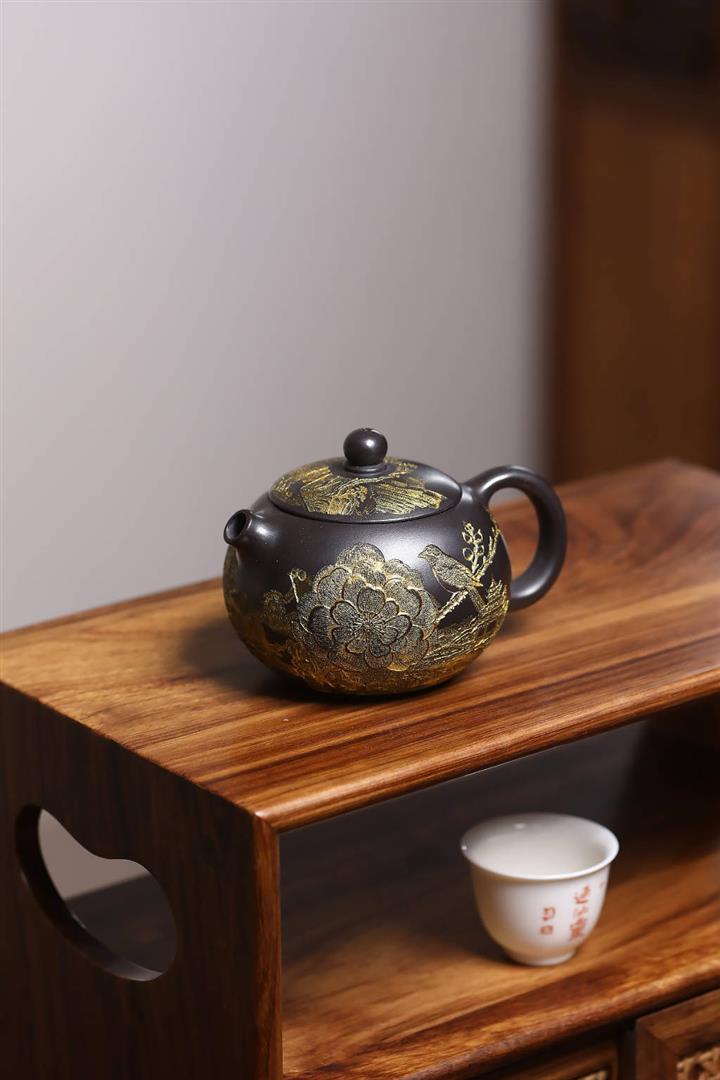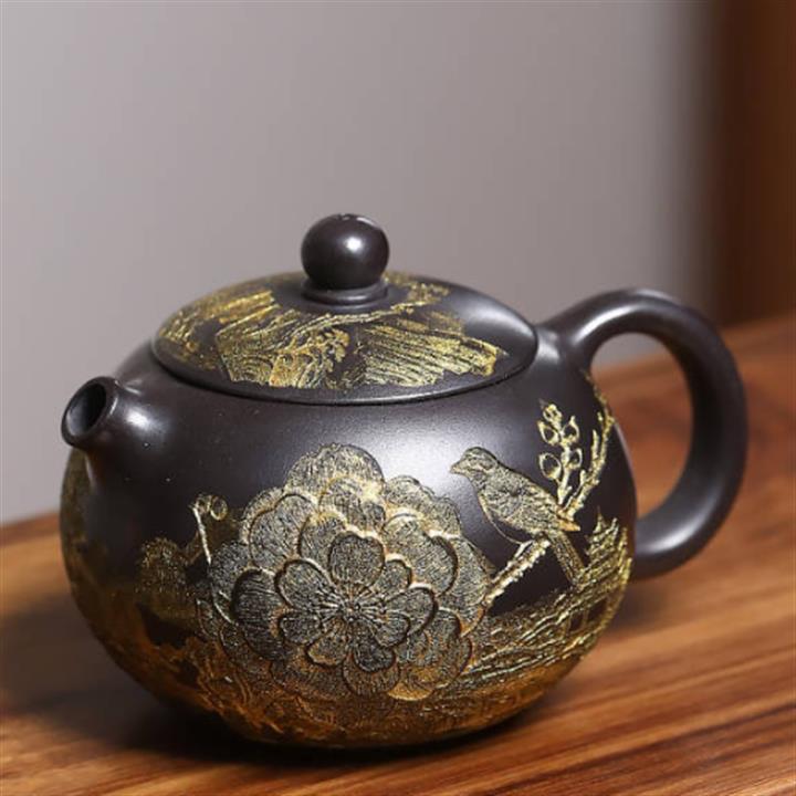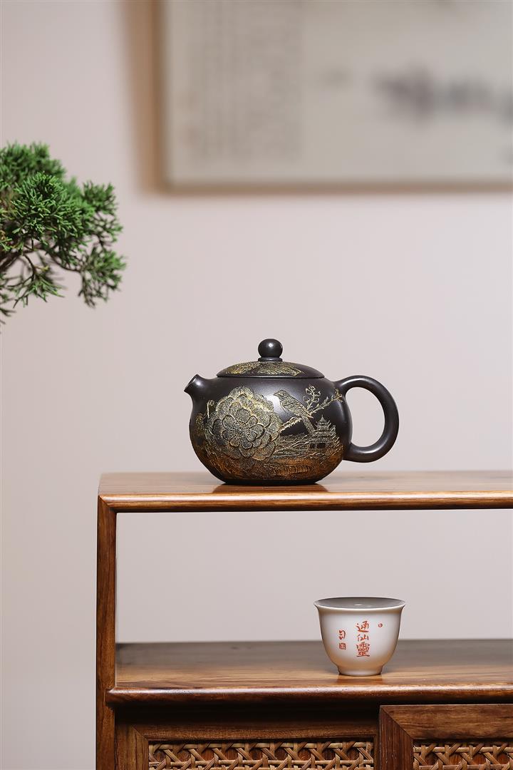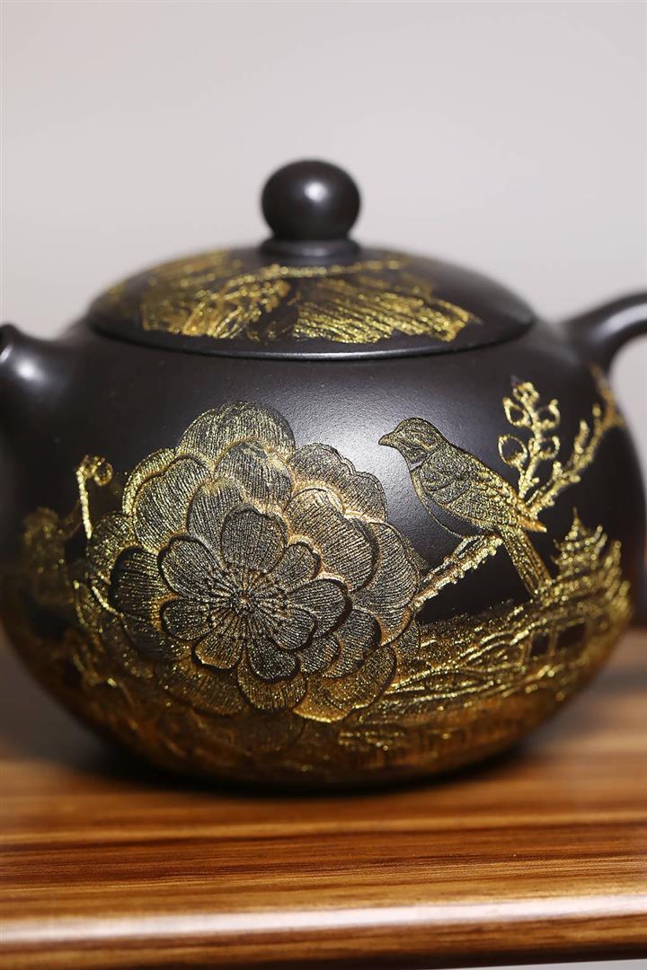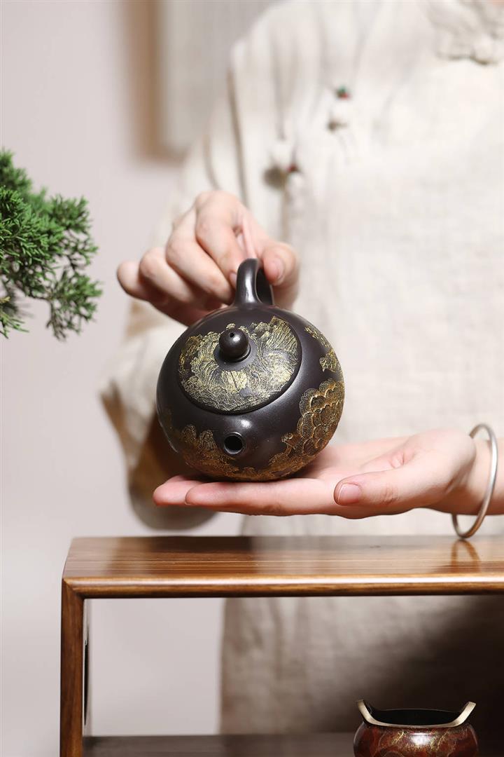 捂灰朱泥琺瑯彩燒曼殊茶壺POT7457