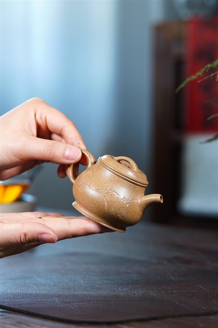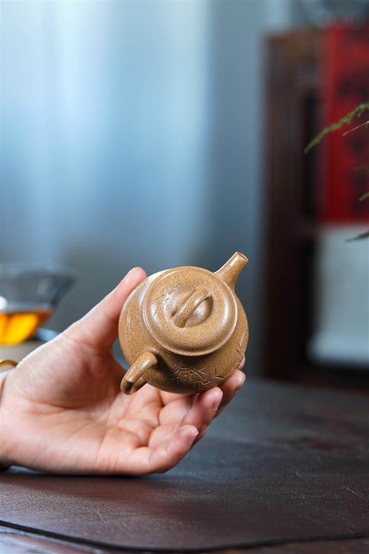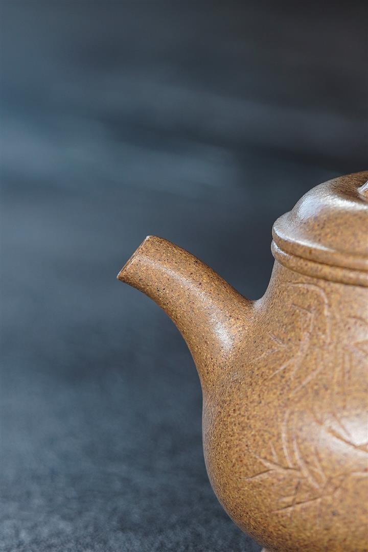 潘壺是壹款經典器型,此款潘壺與別的壺型有所不同,其形似梨型,卻在細節處做了創新設計,初看此壺覺得有種舒朗大氣的感覺,渾樸秀麗的氣質因此而生。