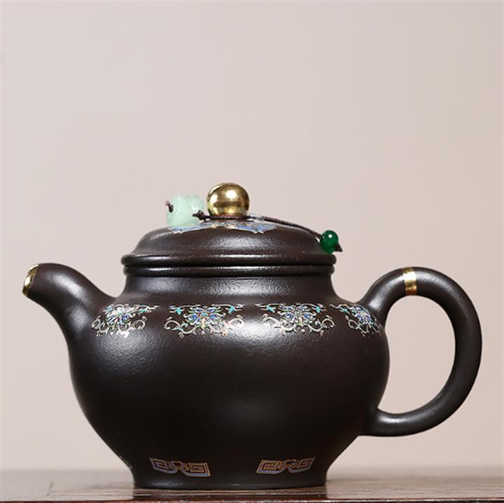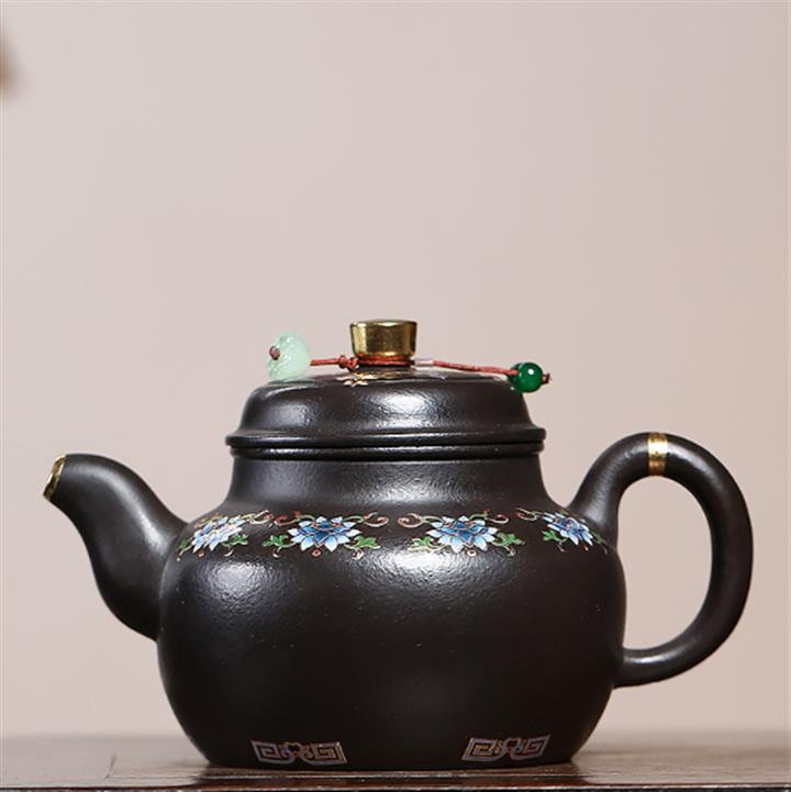 捂灰朱泥琺瑯彩燒曼殊茶壺POT7457