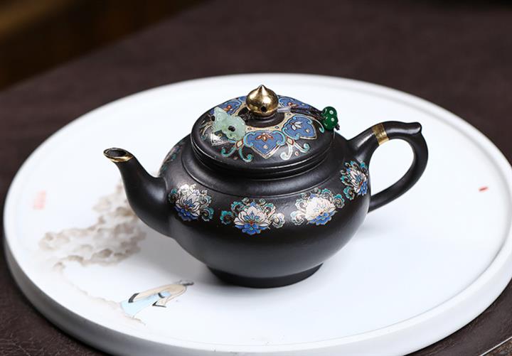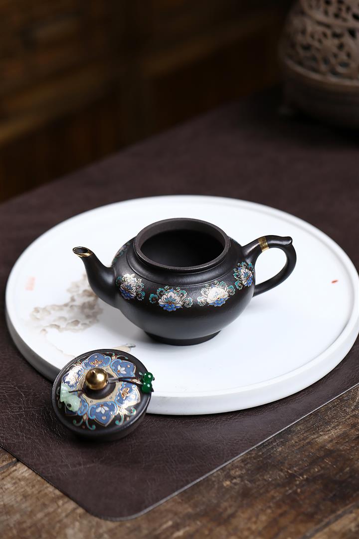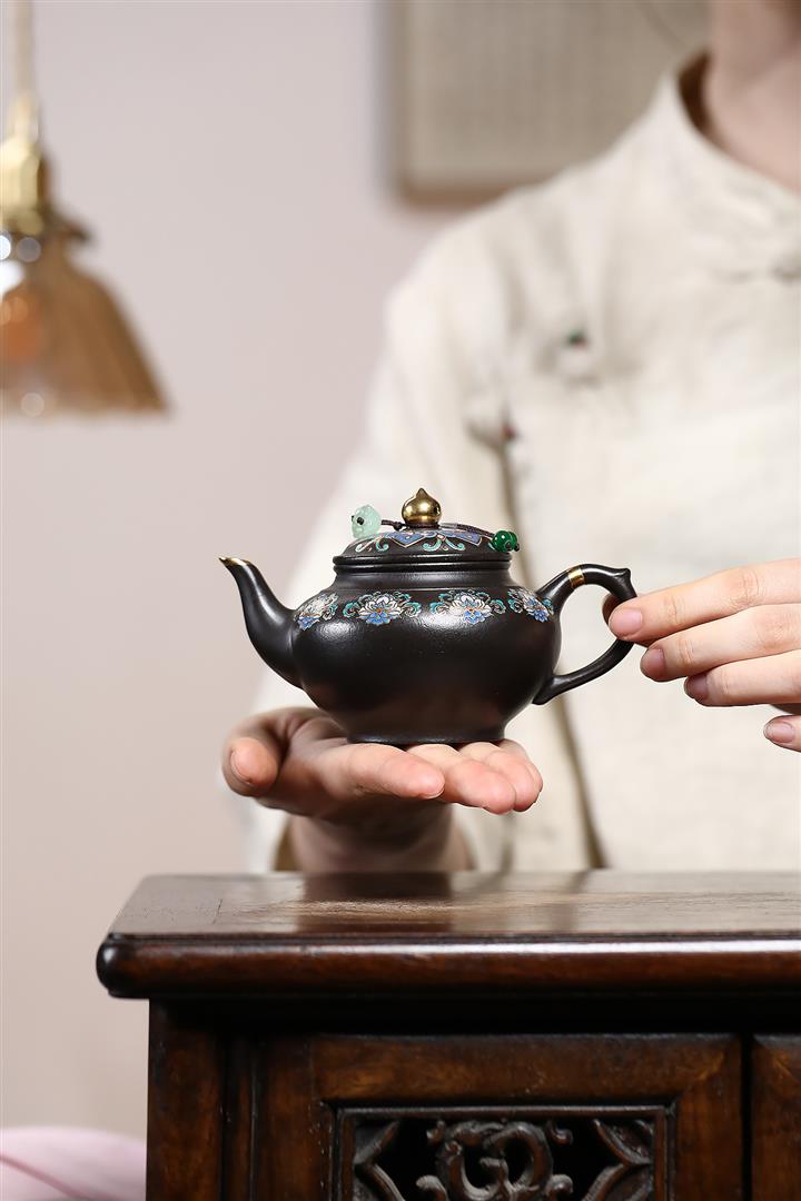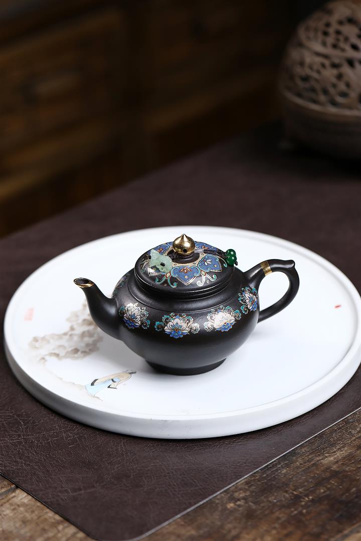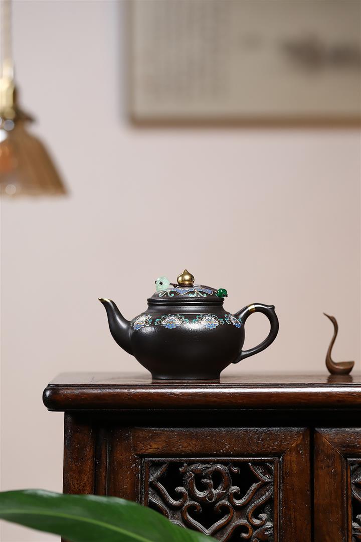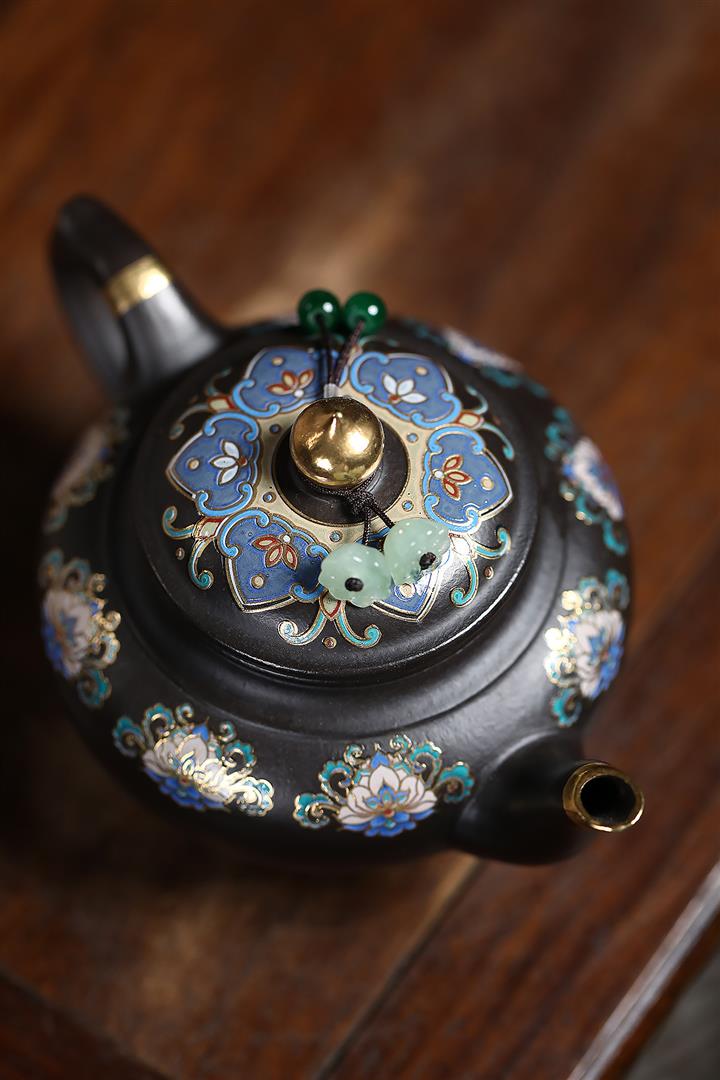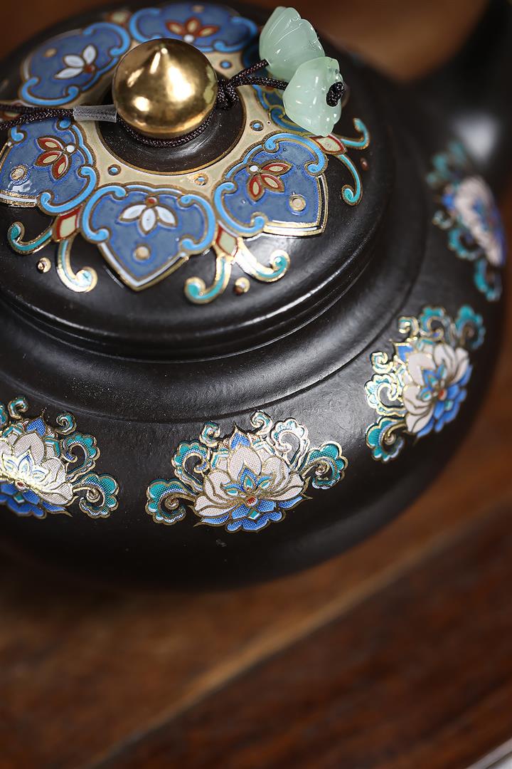 捂灰朱泥琺瑯彩燒曼殊茶壺POT7457