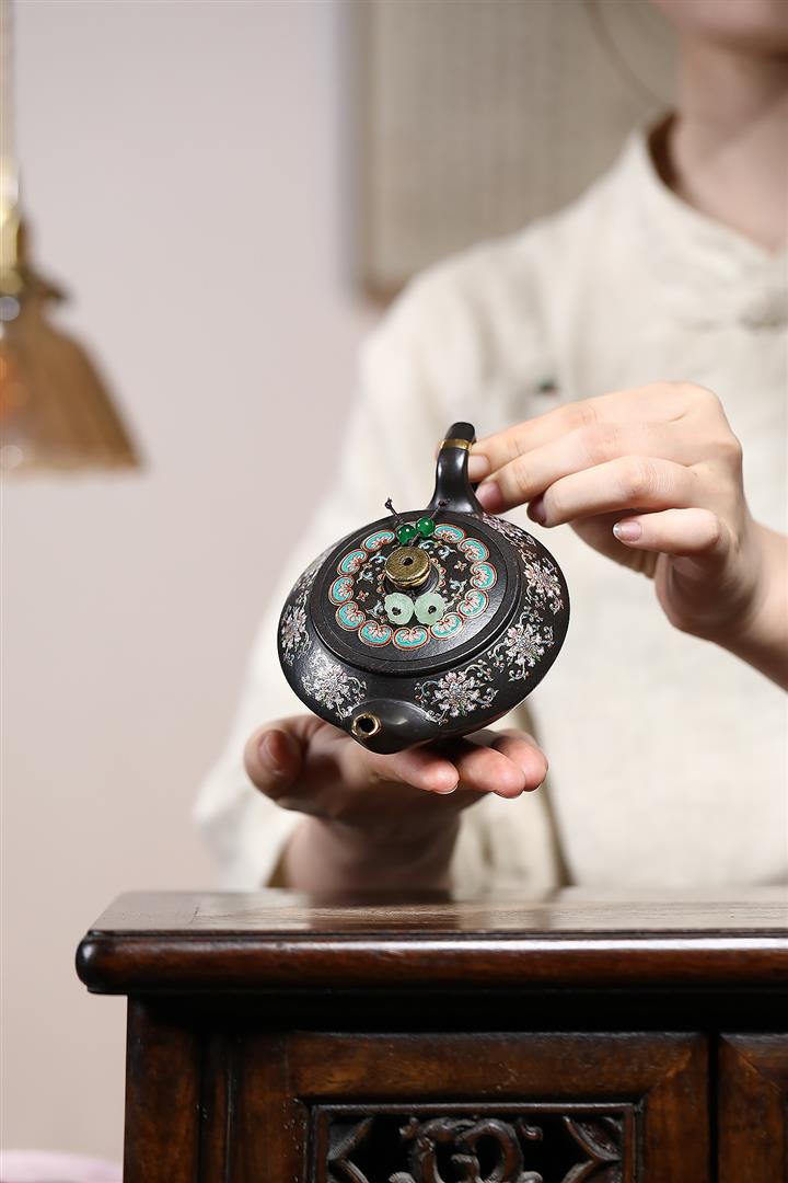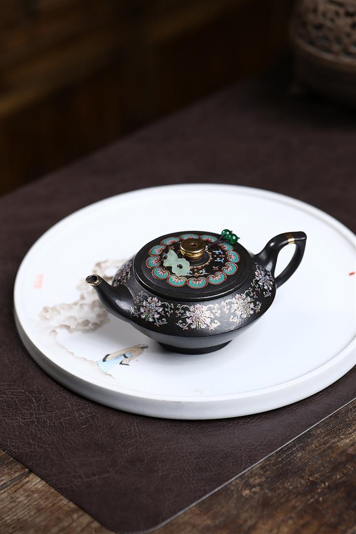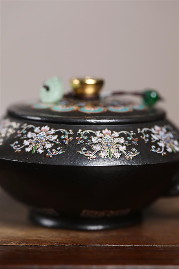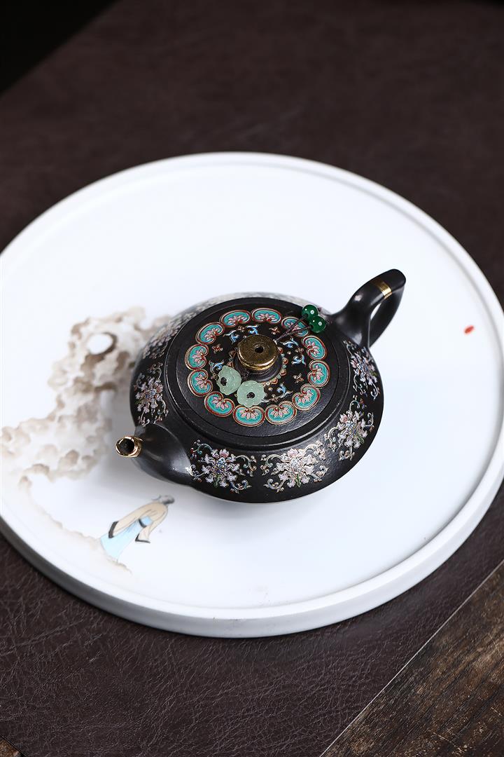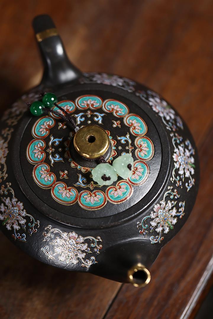 捂灰朱泥琺瑯彩掇只茶壺POT7459