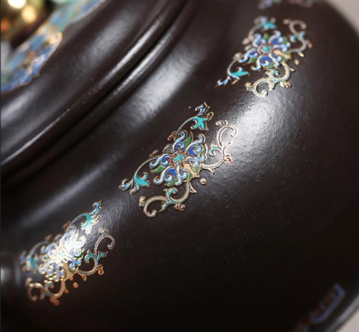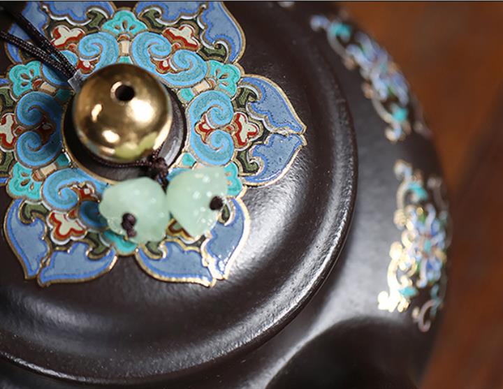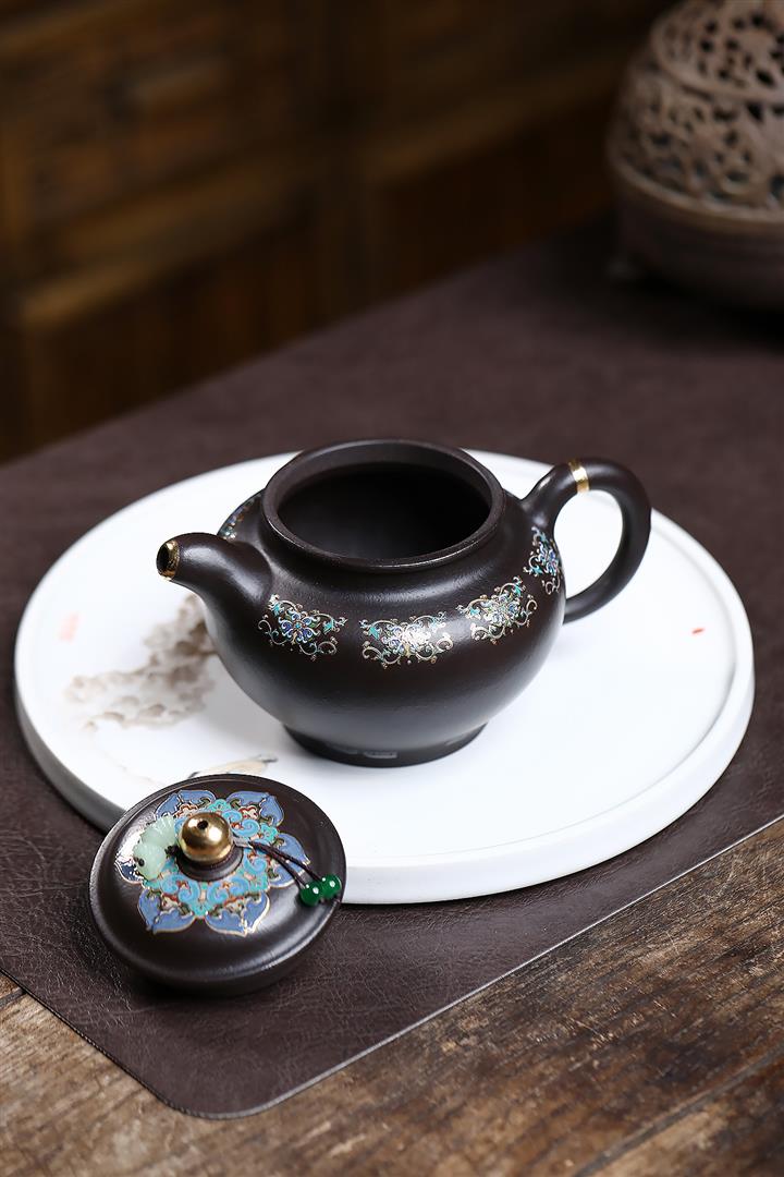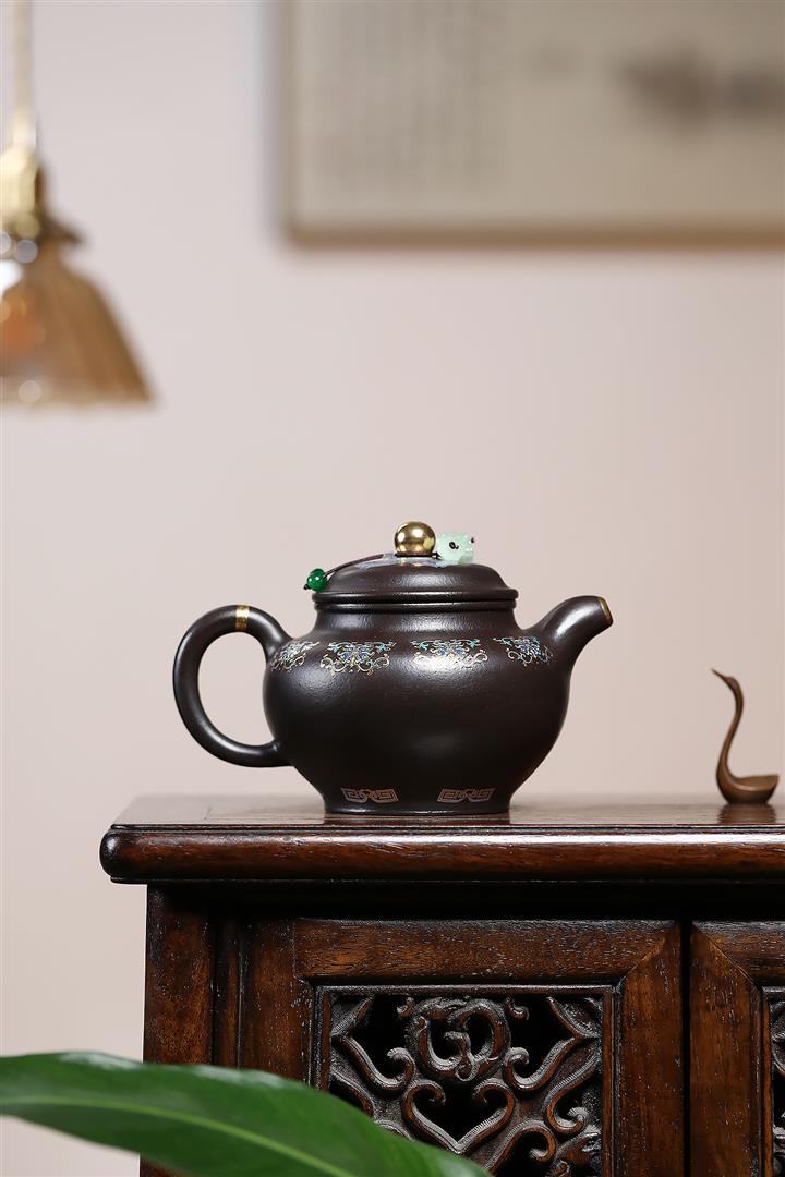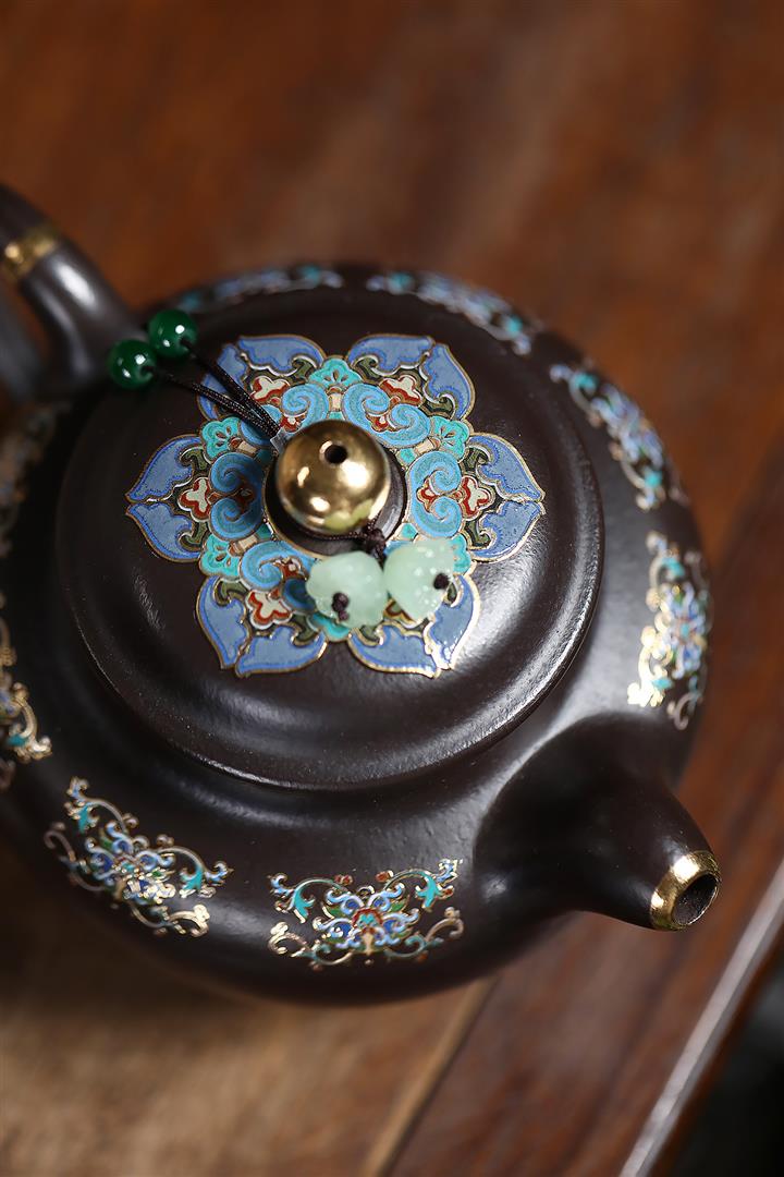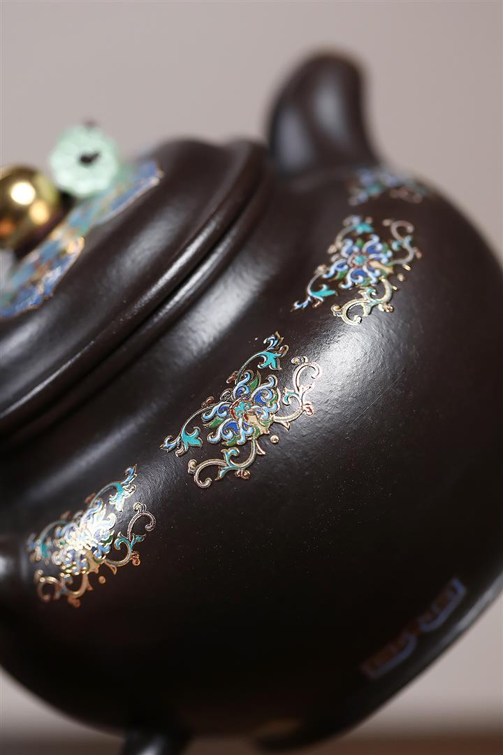 捂灰朱泥琺瑯彩掇只茶壺POT7459