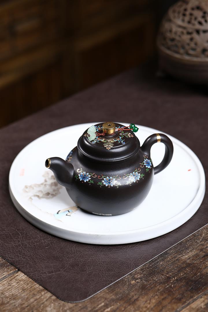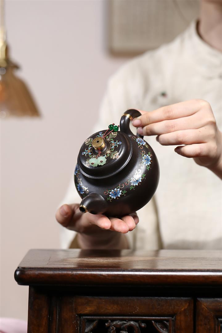 捂灰朱泥琺瑯彩宮廷女士茶壺POT7460