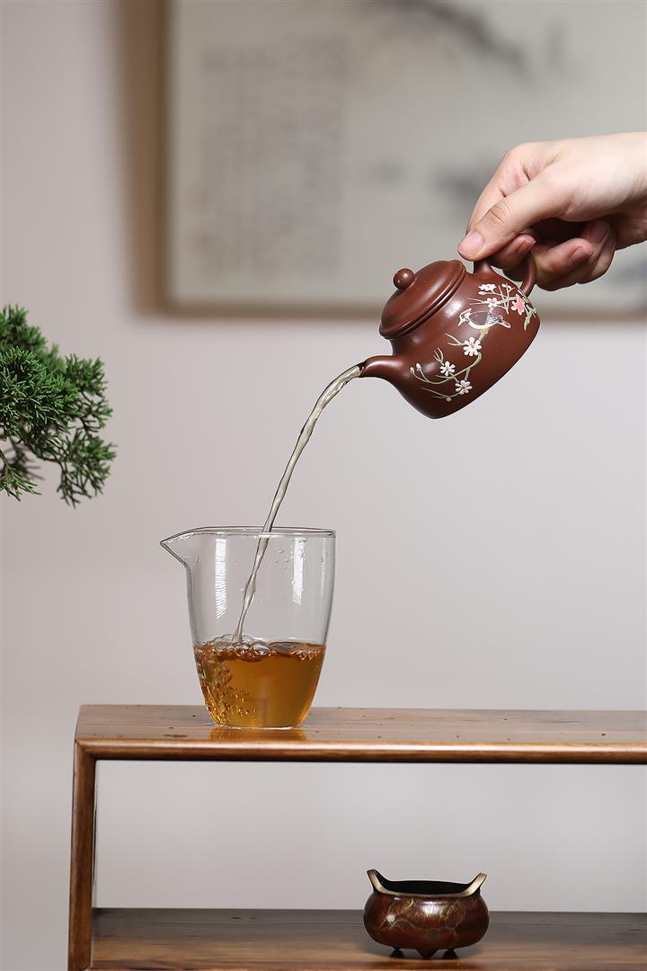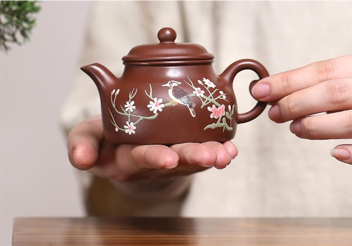 紫砂使用越久,壺身色澤越發光亮照人,氣韻溫雅。紫砂壺長久使用器身會因撫摸擦拭,變得越發溫潤光澤!