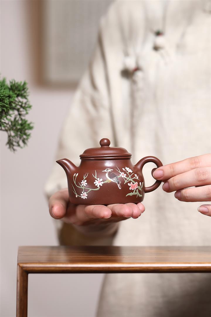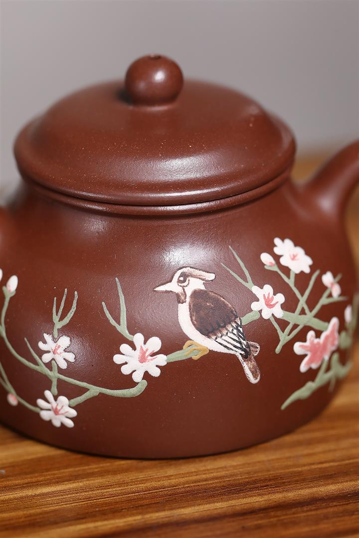 原礦龍血砂泥韶華花鳥文人茶壺POT7465