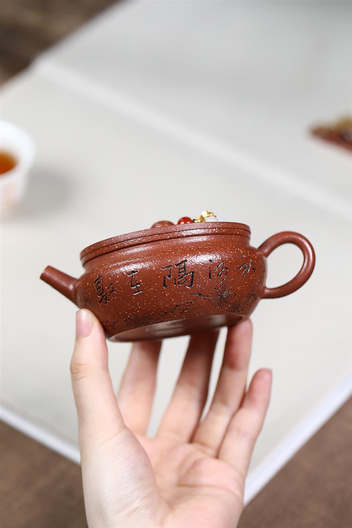 紫砂使用越久,壺身色澤越發光亮照人,氣韻溫雅。紫砂壺長久使用器身會因撫摸擦拭,變得越發溫潤光澤!