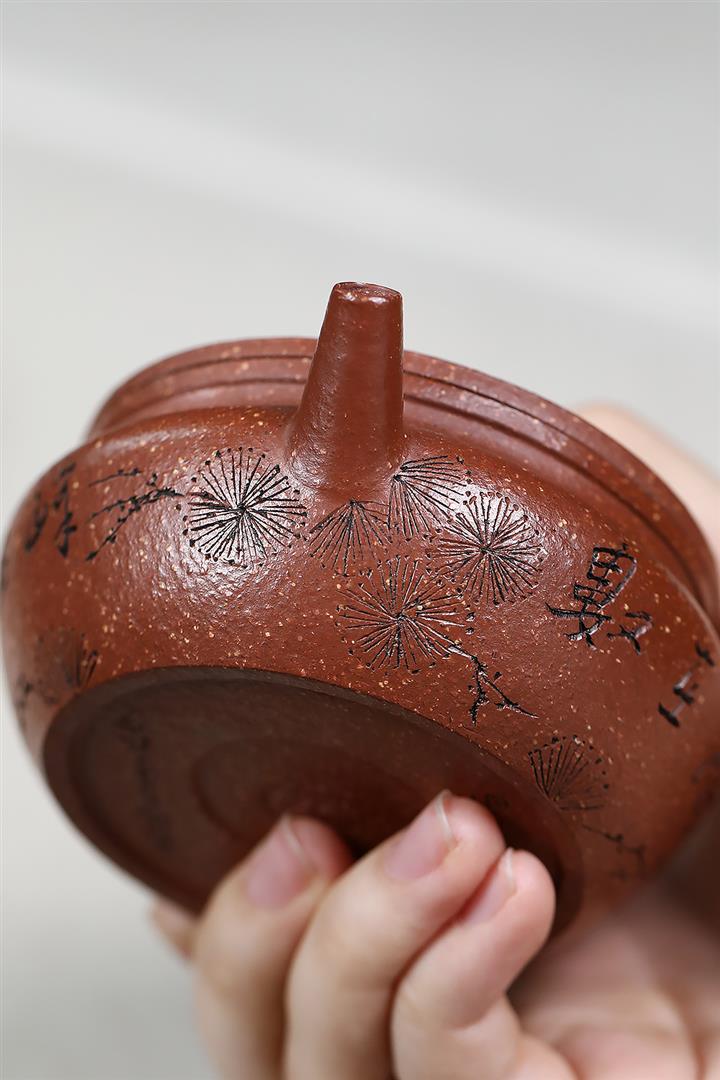 原礦紫泥歲寒三友漢瓦茶壺POT7468