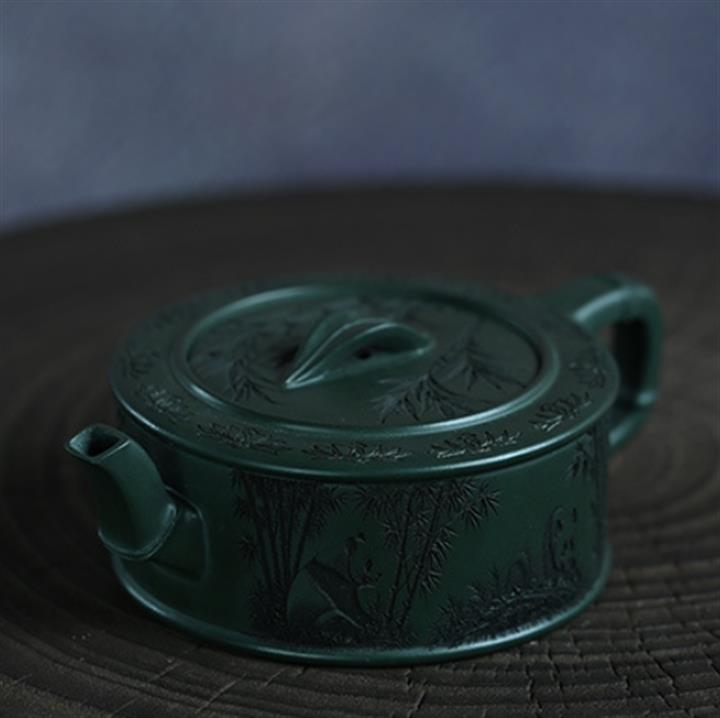 原礦綠泥漢瓦刻繪茶壺POT7474