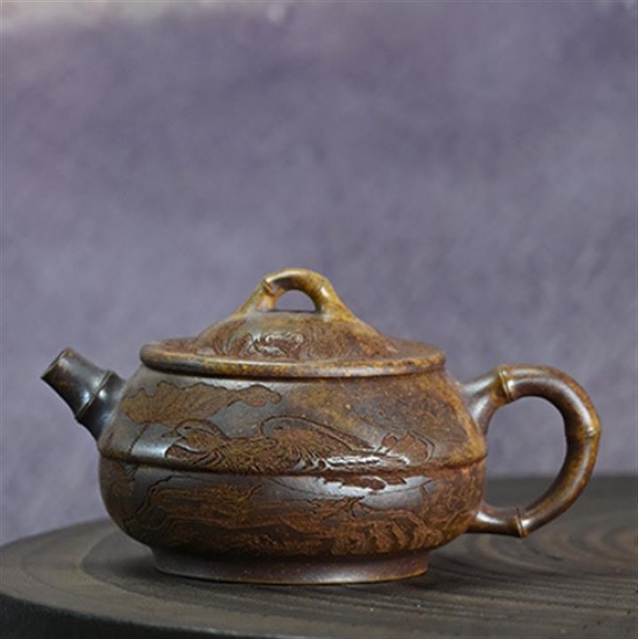 原礦開花泥文竹刻繪茶壺POT7471