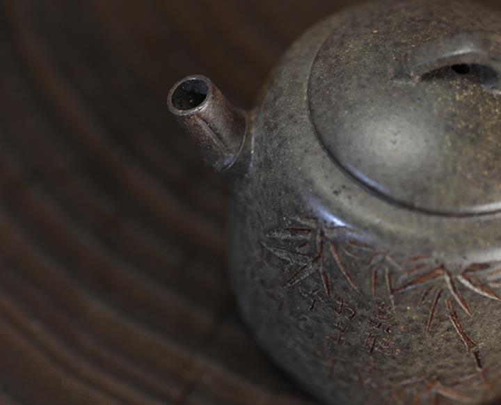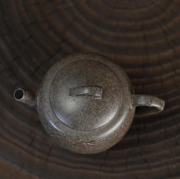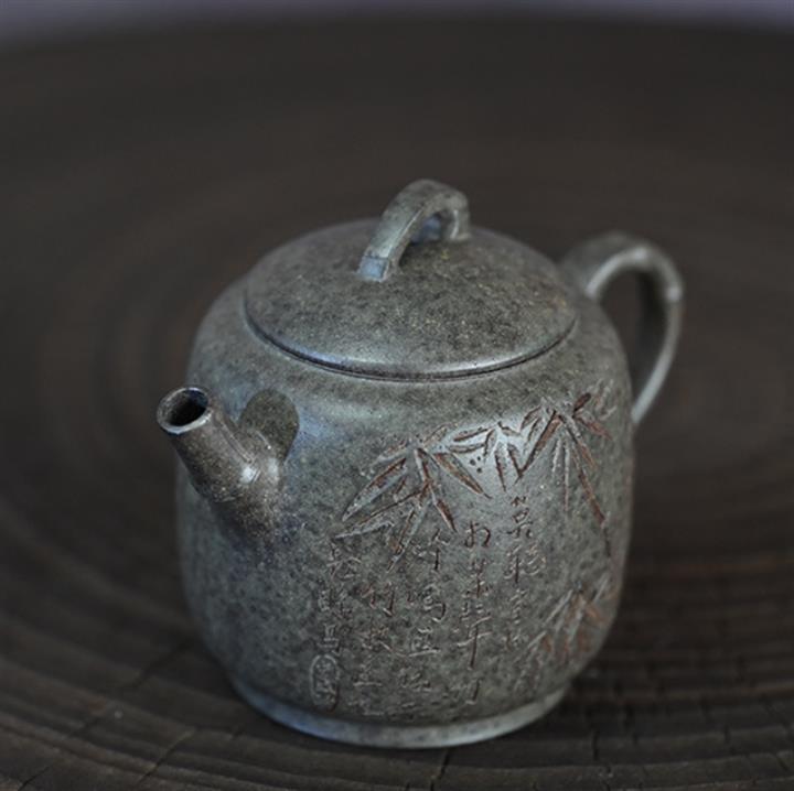 原礦開花泥文竹刻繪茶壺POT7471