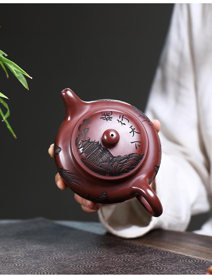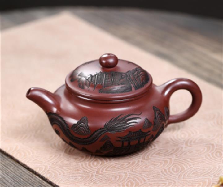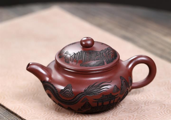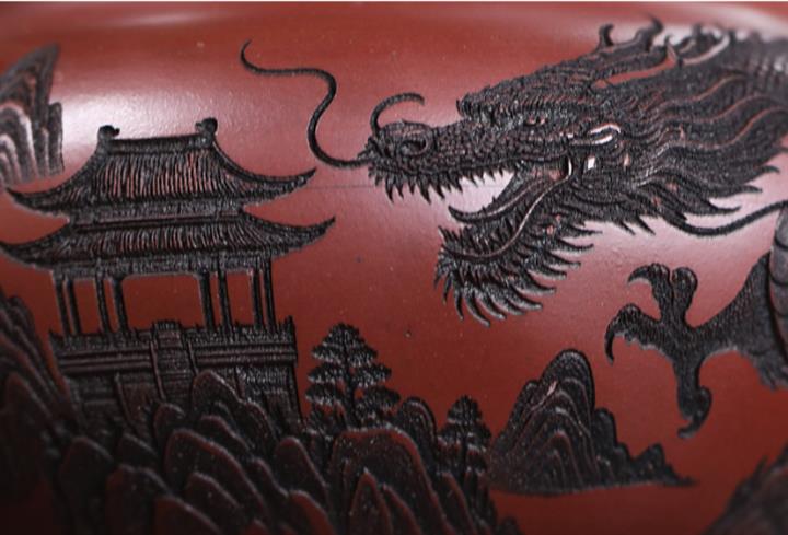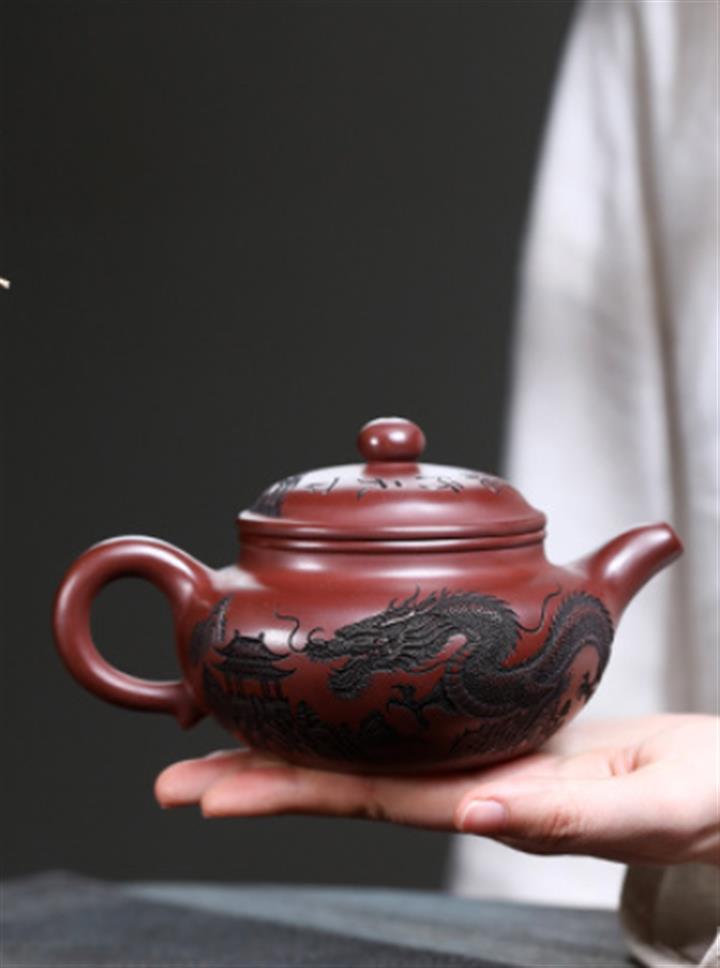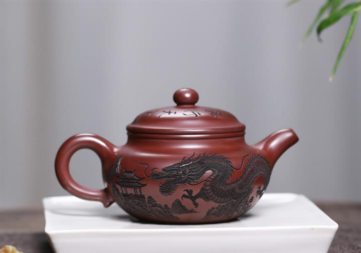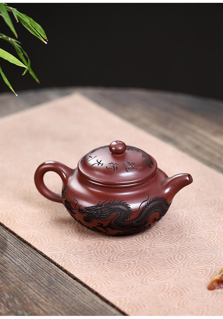 原礦紫泥刻繪龍行天下茶壺POT7483
