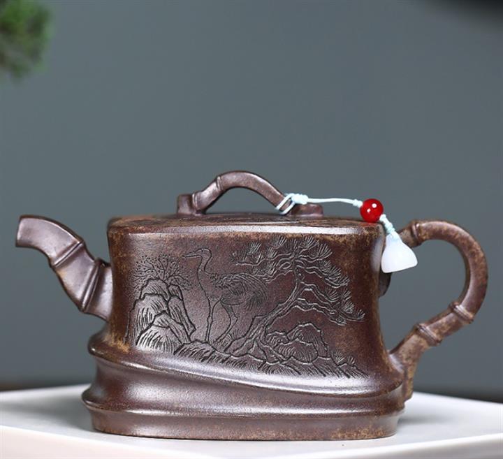 原礦古銅烏泥六方松趣茶壺POT7490