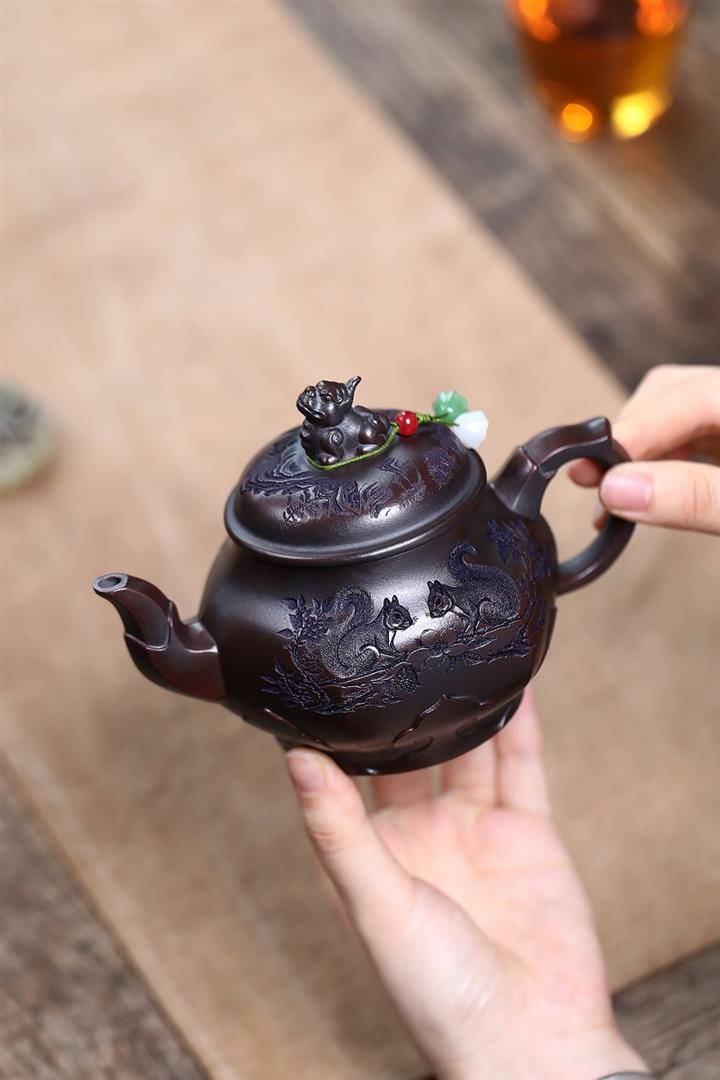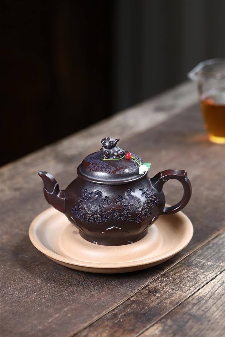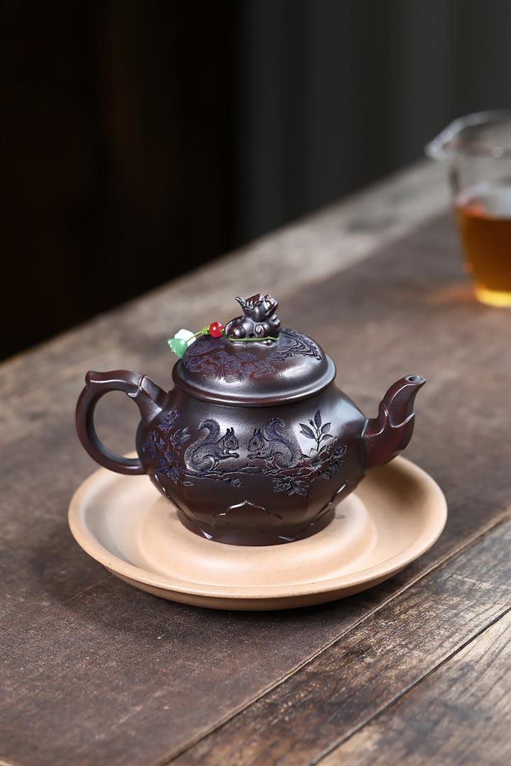 紫砂使用越久,壺身色澤越發光亮照人,氣韻溫雅。紫砂壺長久使用器身會因撫摸擦拭,變得越發溫潤光澤!