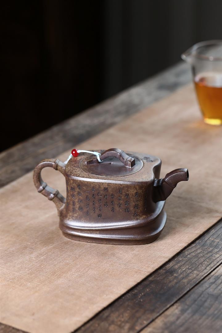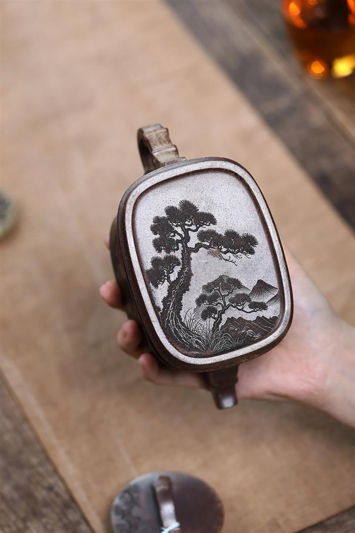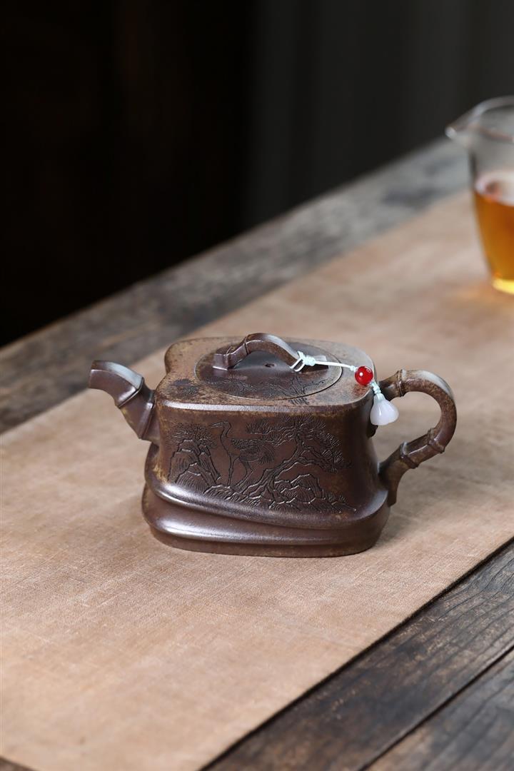 原礦綠泥文人山水漢瓦茶壺POT7498