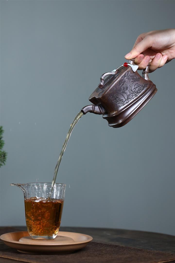 紫砂使用越久,壺身色澤越發光亮照人,氣韻溫雅。紫砂壺長久使用器身會因撫摸擦拭,變得越發溫潤光澤!