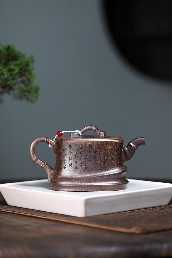 原礦柴燒沈香泥四方竹節茶壺POT7491